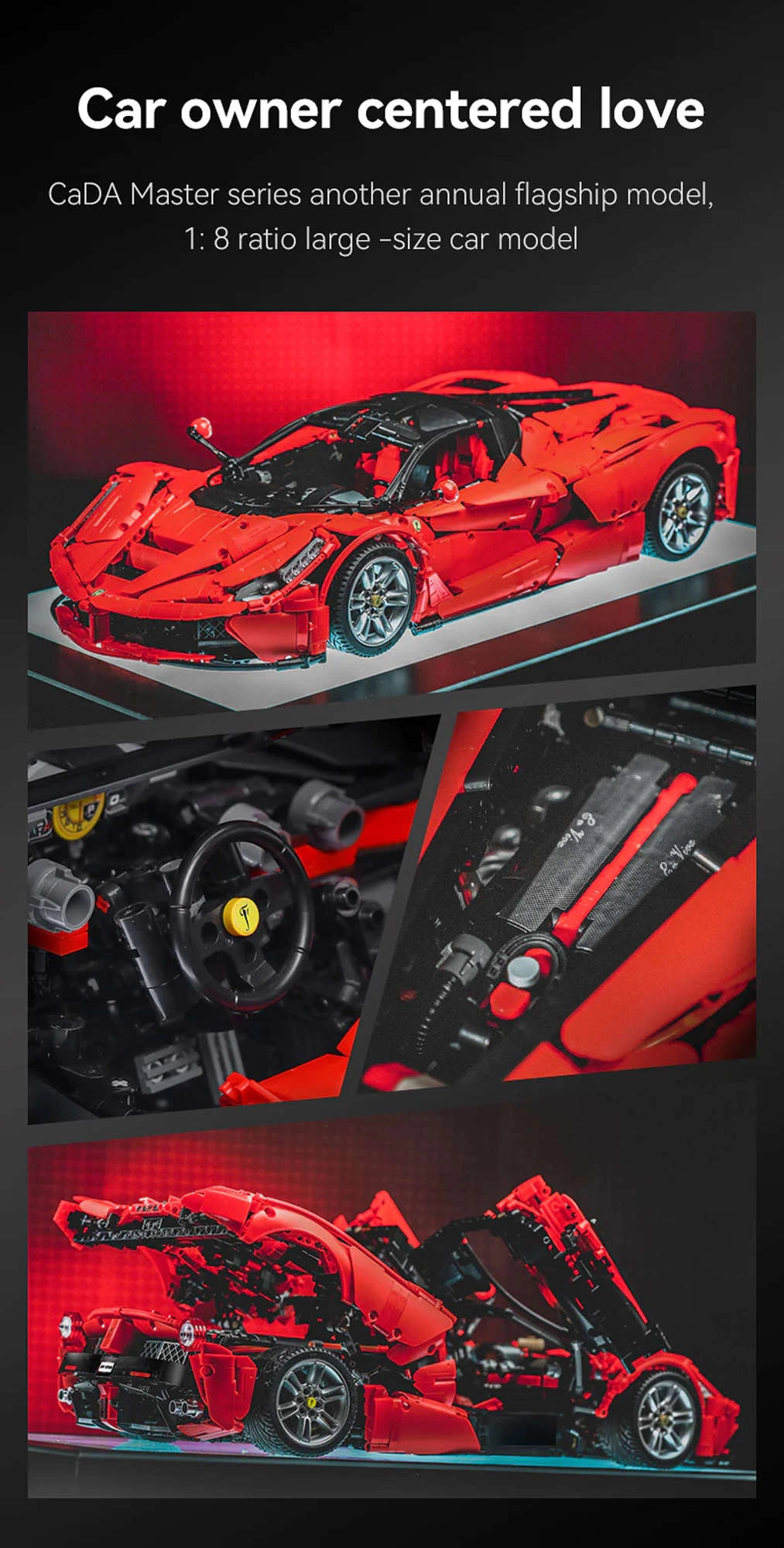 Der Baukasten bietet ein intensives Bauerlebnis mit einem ausführlichen Schritt-für-Schritt-Handbuch. Die Teile sind kompatibel mit anderen CaDA-Sets, sodass Sie Ihr Projekt leicht erweitern oder mit eigenen Anpassungen ergänzen können. Das fertige Modell misst etwa 60 × 27 × 13,5 cm und beeindruckt mit einer markanten roten Karosserie mit schwarzen Akzenten sowie 4 Gummirädern für eine reibungslose Bewegung auf verschiedenen Oberflächen.
