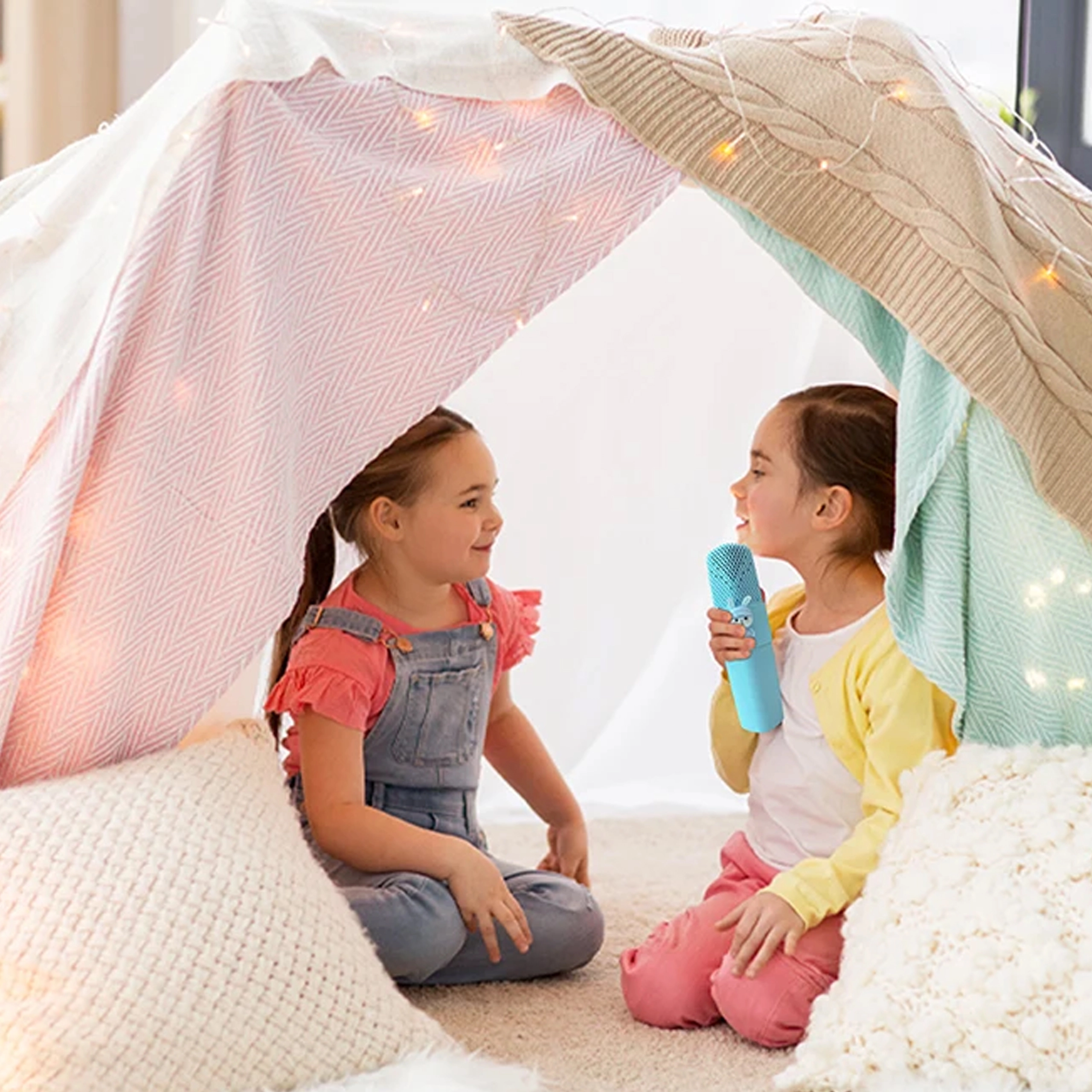 Niedliches Design mit Häschen-Motiv, kindersichere Ausführung und einfache Bedienung machen dieses Mikrofon zur perfekten Wahl für kleine Sänger. Dank Bluetooth lässt es sich leicht mit Smartphone oder Tablet koppeln und ermöglicht bequemes Abspielen, Pausieren, Überspringen von Titeln sowie das Anpassen der Lautstärke, ohne zum Gerät greifen zu müssen.