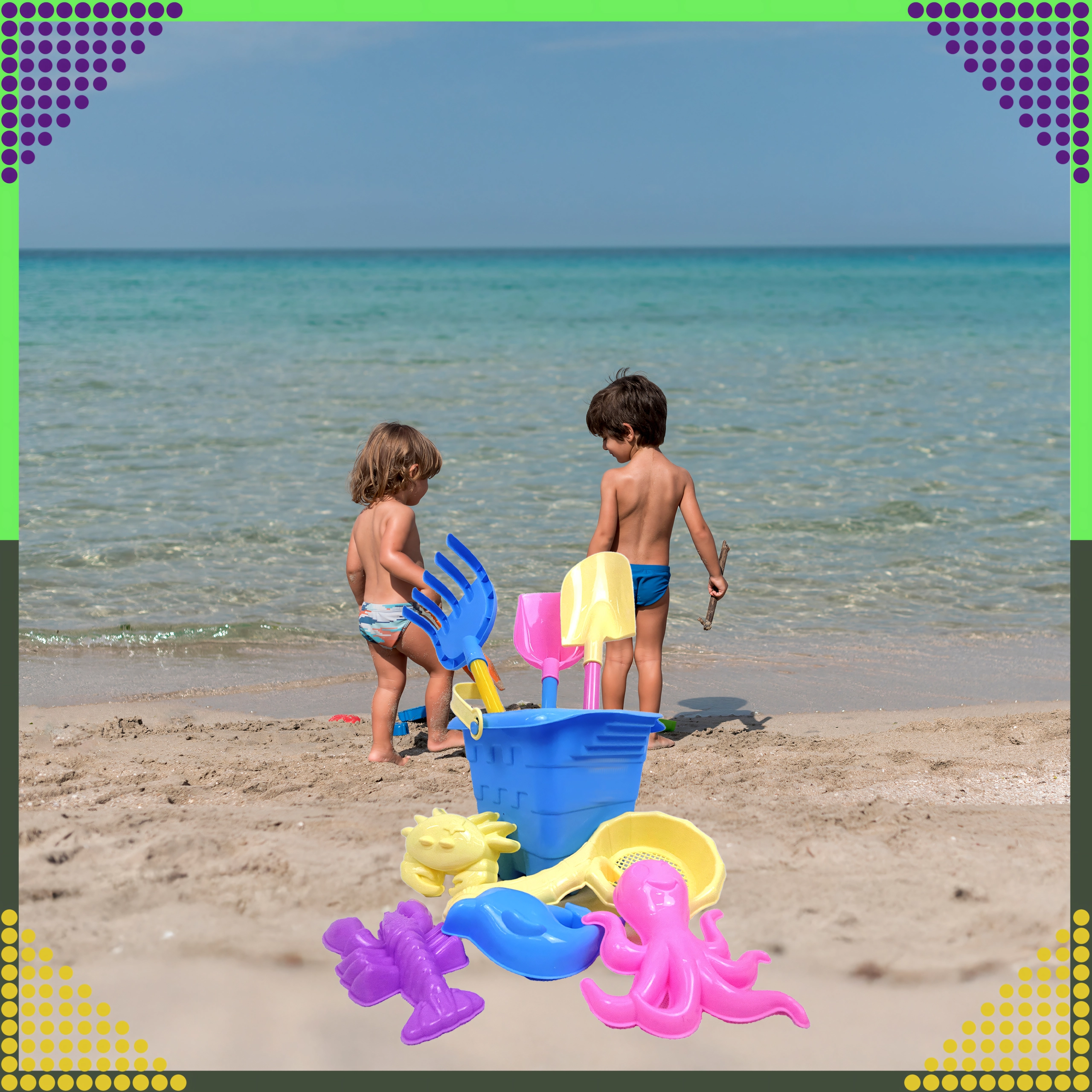 Strandspielzeug-Set mit Eimer und Förmchen, 9-tlg.