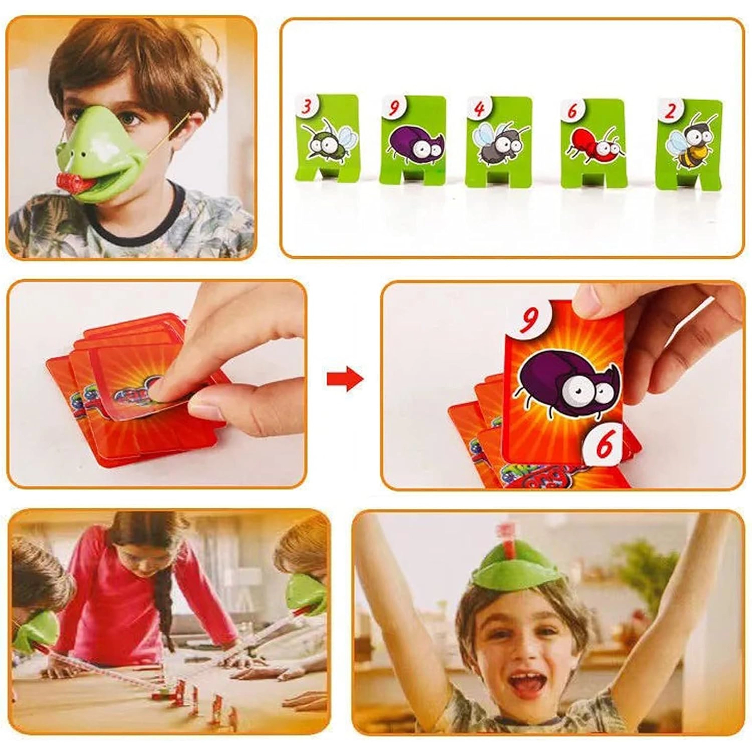 Maske aufsetzen, Zunge rausstrecken und die Jagd beginnt! Dieses flotte Partyspiel verbindet Bewegung, Aufmerksamkeit und eine Prise verrückter Action. Ziel ist es, möglichst schnell stehende Kärtchen mit Zahlen und Käfern zu treffen oder zu schnappen und König des Froschteichs zu werden. Dank der einfachen Regeln können auch jüngere Kinder mitspielen, während Erwachsene spannende Rivalität genießen.