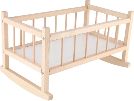 Diese stilvolle Holzwiege ist so gestaltet, dass sie Puppen Komfort und Sicherheit bietet. Sie ist aus hochwertigem Holz gefertigt und bietet ein schlichtes, aber elegantes Design.