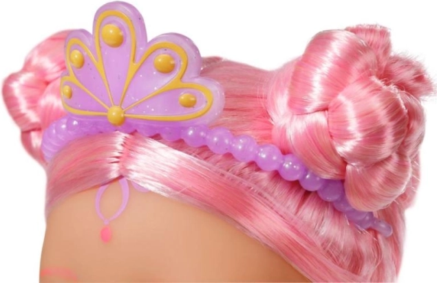Die langen rosa Haare der Puppe lassen sich leicht mit dem beigefügten Kamm pflegen und stylen.