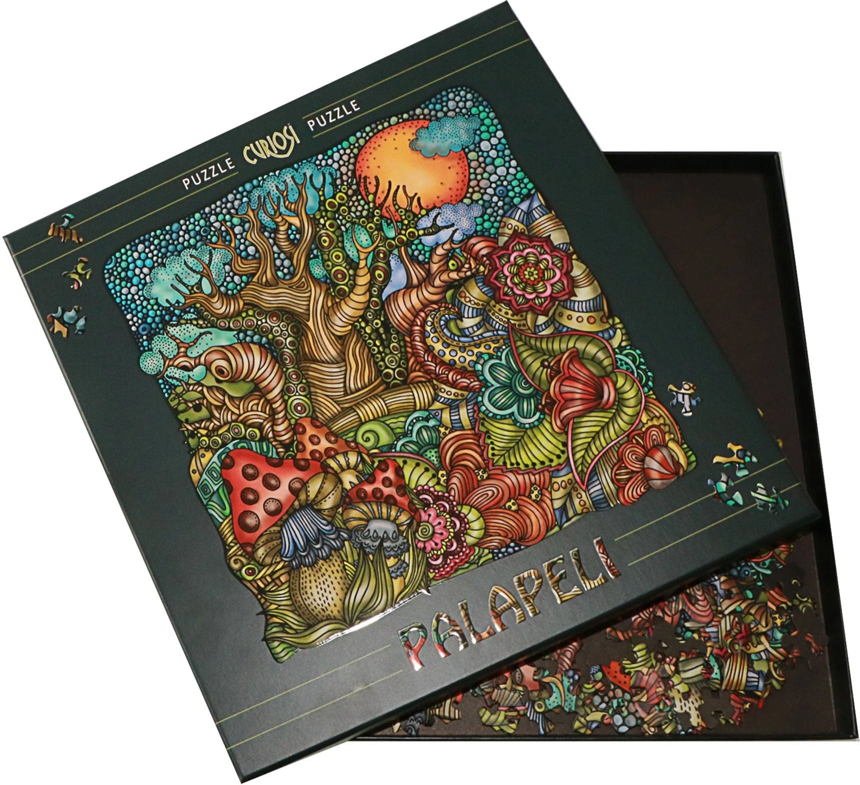 Tauchen Sie ein in den Wunderwald mit dem Design-Puzzle CURIOSI Palapeli. Die Kombination aus handgefertigtem Motiv und unkonventionell geformten Teilen macht es zu einem einzigartigen Stück, das sowohl Sammler als auch Gelegenheitspuzzler erfreut. Dank des kompakten quadratischen Formats kommt es sowohl im Regal als auch an der Wand hervorragend zur Geltung.