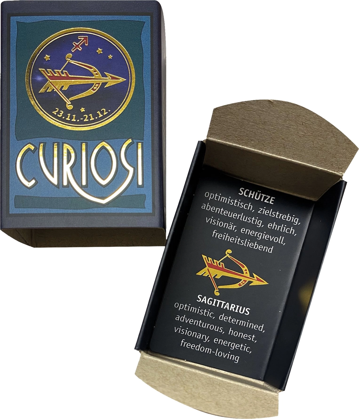 Das runde Mini-Puzzle Curiosi aus der Serie Tierkreis präsentiert das Sternzeichen Schütze in einem kompakten Format mit luxuriösem Goldglanz-Effekt. Dank der originell geformten Teile macht das Puzzeln Spaß und geht zugleich schnell – ideal für einen kurzen Moment der Entspannung jederzeit am Tag.