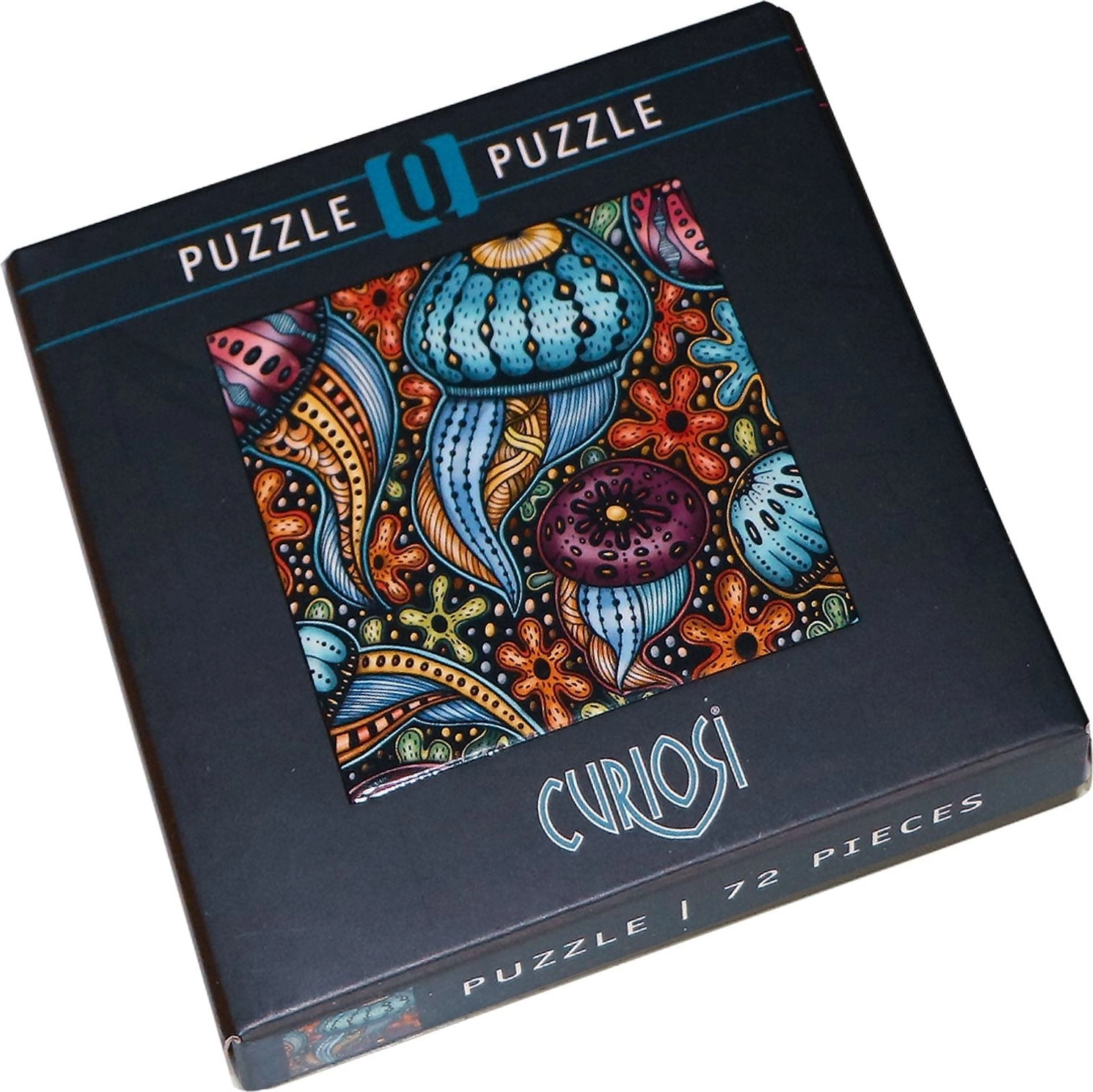 Das stylische Mini-Puzzle mit bunten Quallen besticht durch sein einzigartiges quadratisches Format und die originelle Ausführung. Dank der unkonventionellen Teileformen bietet es ein unterhaltsames Puzzleerlebnis, das auch erfahrene Enthusiasten begeistert.