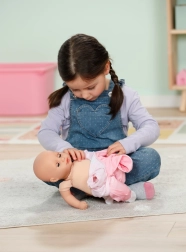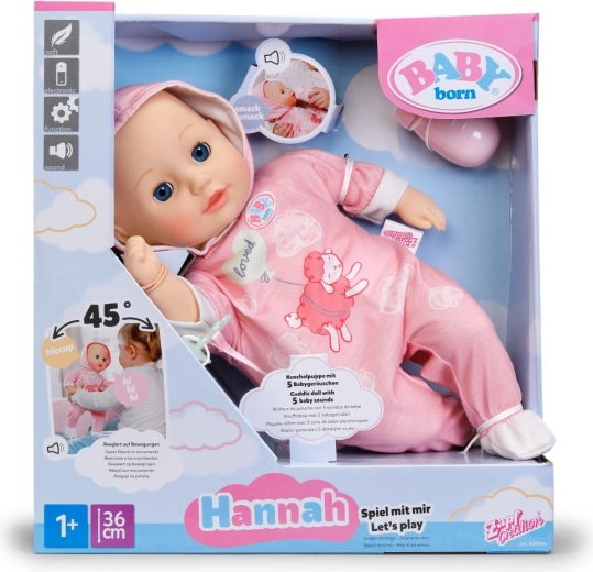 Entdecke den Zauber von Fürsorgespielen mit der Puppe BABY born Hannah – Komm, wir spielen! Dank des weichen Körperchens liegt sie angenehm in der Hand, lässt sich wunderbar im Arm halten und lädt zum Kuscheln ein. Kinder lieben die einfache Interaktion – die Puppe gibt süße Babylaute von sich, beim Füttern mit dem Fläschchen erklingen niedliche Trinkgeräusche und beim Einschlafen schnurrt sie leise und schließt die Augen.
