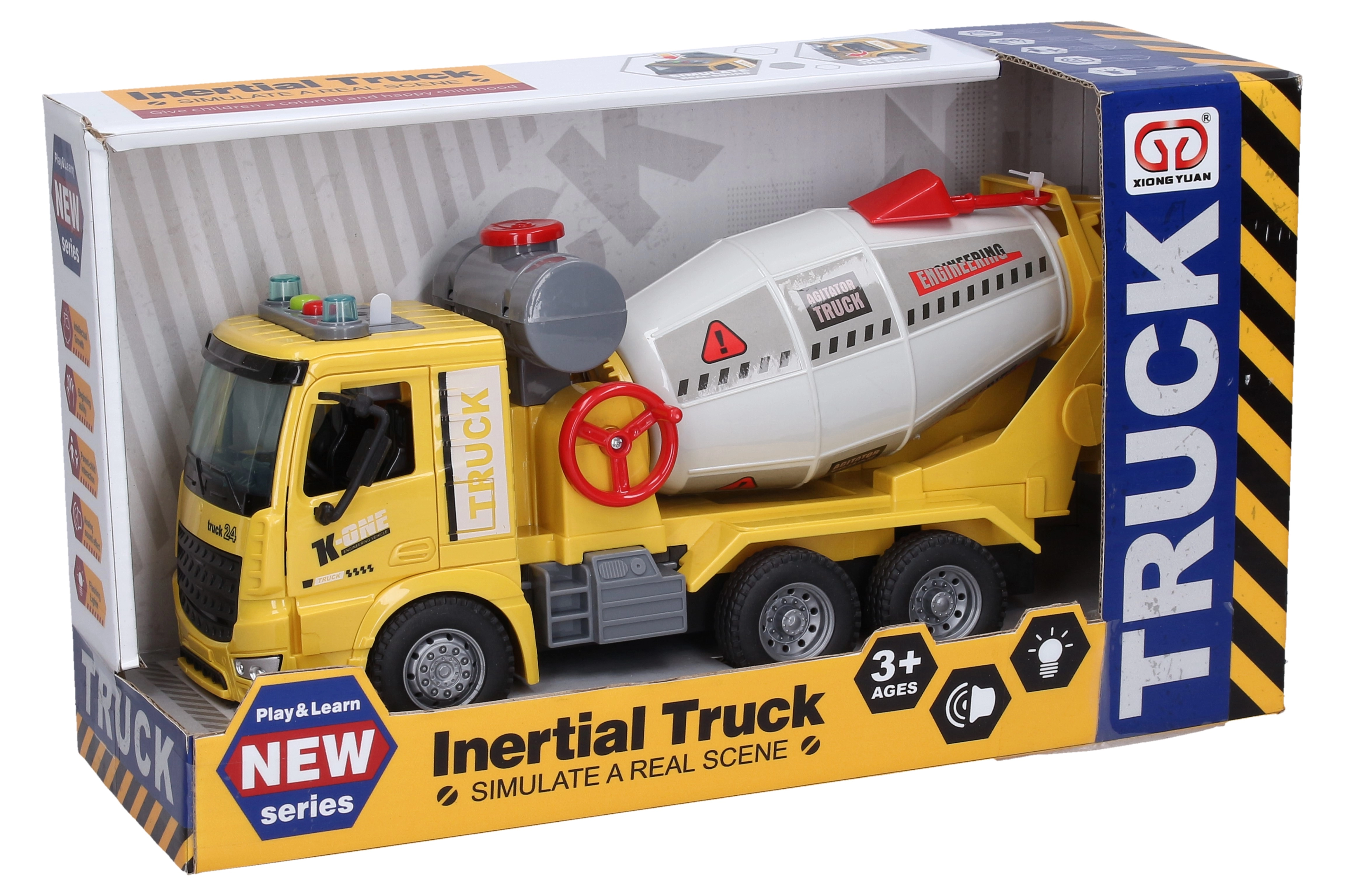 Dieser detailreich gestaltete Betonmischer passt perfekt in jede kindliche Baufahrzeug-Flotte. Dank des Schwungradantriebs fährt das Fahrzeug nach einem Anschubsen selbstständig weiter und sorgt für eine gleichmäßige Bewegung. LED-Lichter und realistische Geräusche von Motor, Mischen, Rückwärtsfahren und Hupen verstärken das authentische Spielerlebnis.