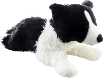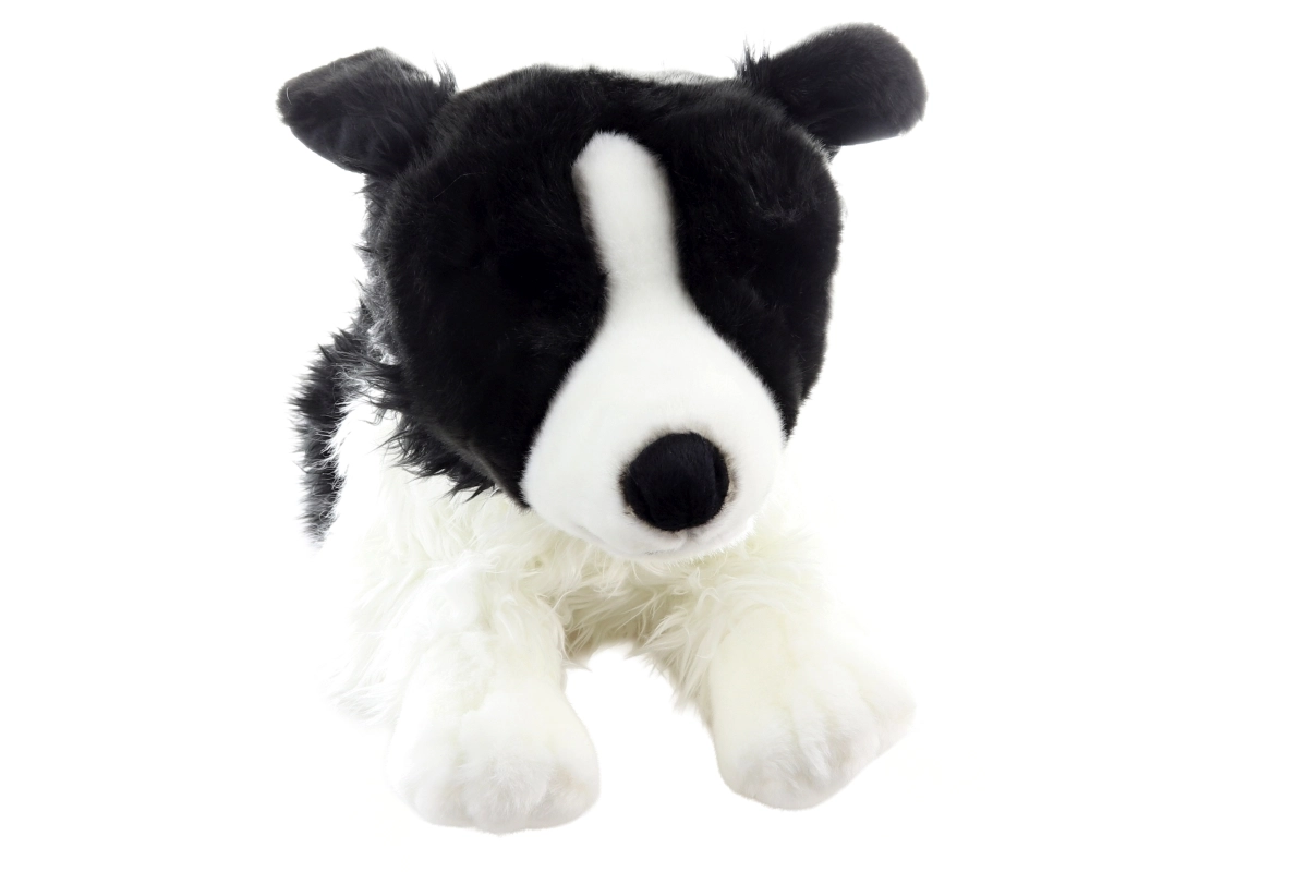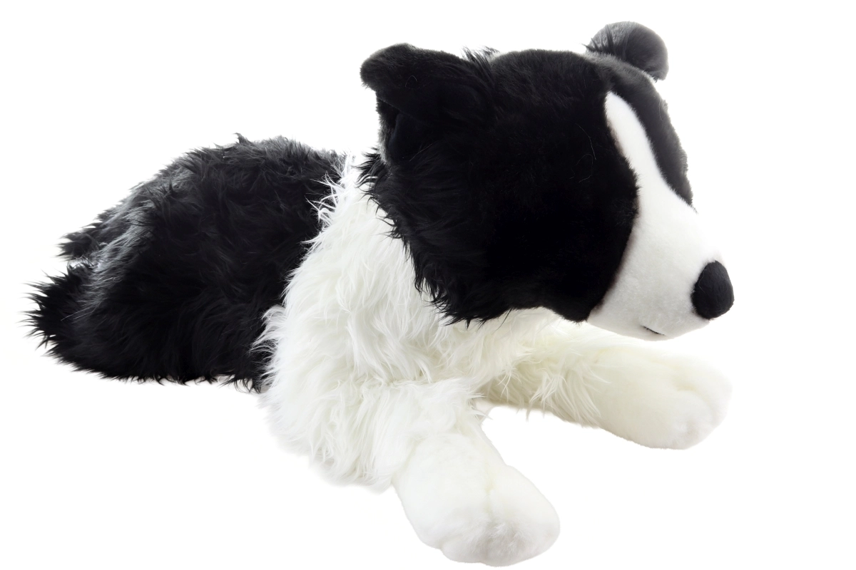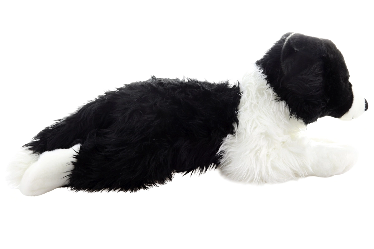 Dieser große Plüschhund Border Collie in liegender Position begeistert auf den ersten Griff. Er ist aus sehr weichem, angenehm zu berührendem Material gefertigt, das zum Umarmen und Kuscheln einlädt. Die realistische Kombination aus schwarzem und weißem Fell sowie die niedlichen Ohren verleihen dem Spielzeug ein authentisches Aussehen.