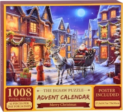 Dieser weihnachtliche Adventskalender mit Puzzle ist eine großartige Möglichkeit, das Warten auf Heiligabend zu versüßen. Öffnen Sie vom 1. bis 24. Dezember jeden Tag ein Türchen und setzen Sie ein kleines Teilmotiv zusammen. Alle Teile ergeben zusammen ein reich illustriertes Poster 70 × 50 cm im Vintage-Stil mit SANTA im roten Schlitten, einem Rentier und einem Winterdörfchen.
