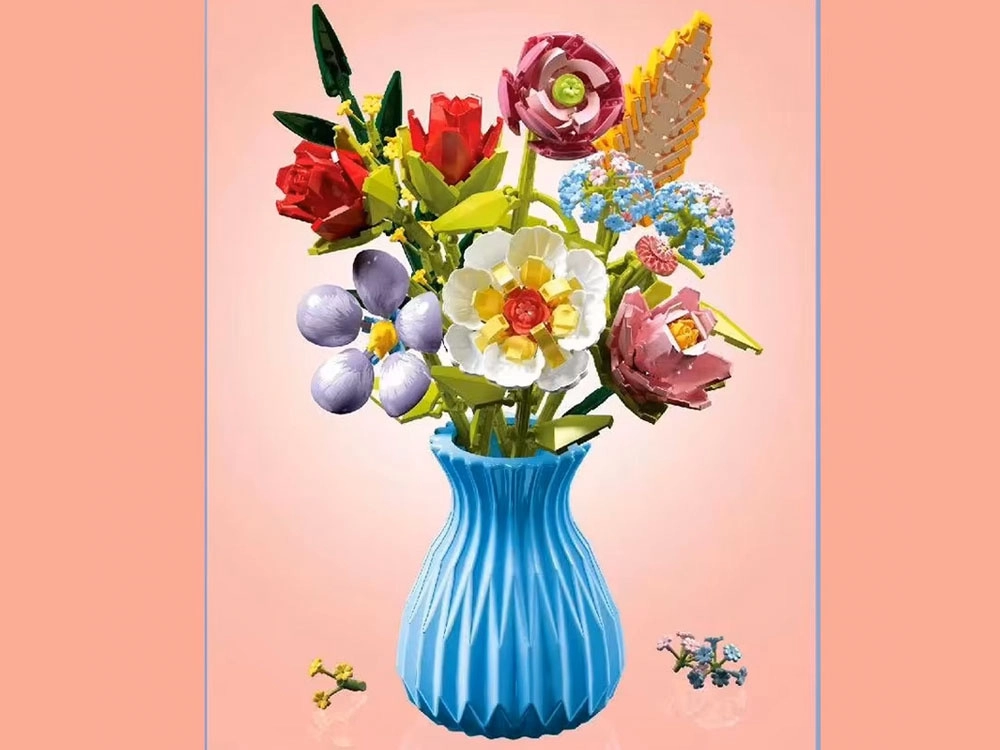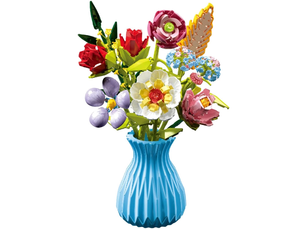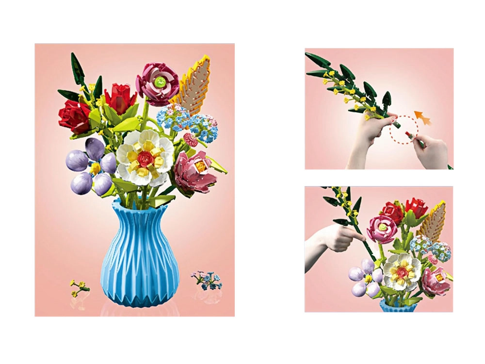 Bauen Sie eine farbenfrohe Sammlung von Blüten und arrangieren Sie diese in der mitgelieferten Vase. Jede Blume hat eine eigene visuelle Anleitung für komfortables Bauen.