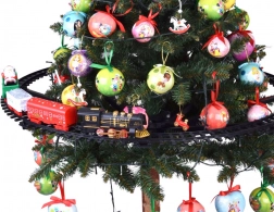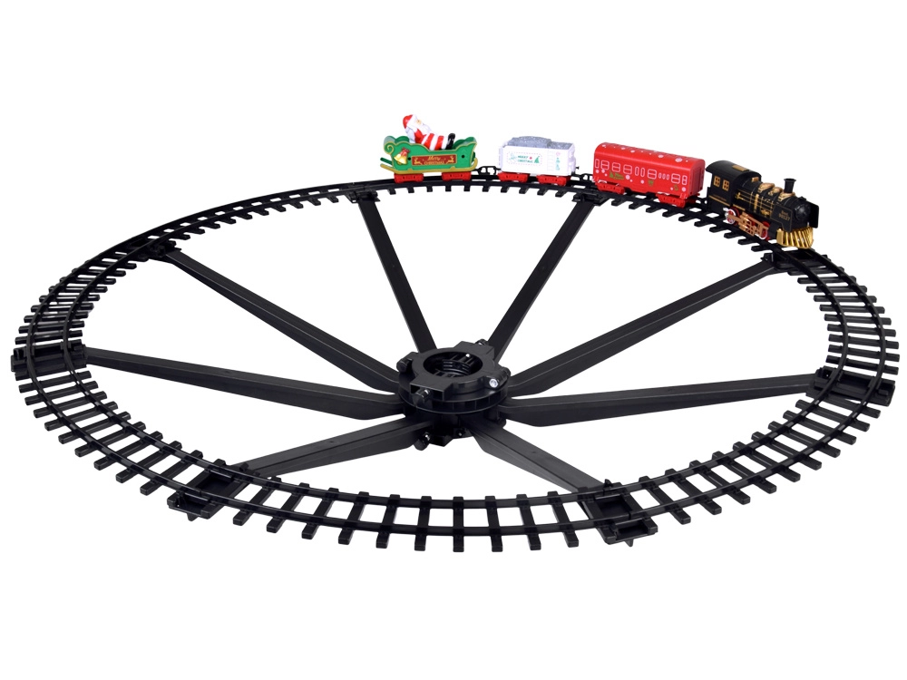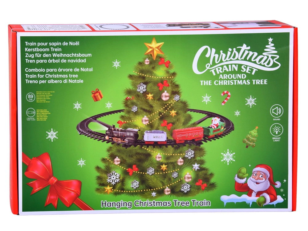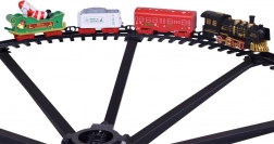Die Lokomotive leuchtet mit einer weißen LED, pfeift wie eine echte Dampflok und spielt eine festliche Melodie. Zwei Fahrgeschwindigkeiten erlauben das ideale Tempo für Ihren Weihnachtsbaum.