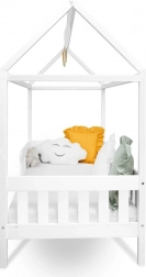 Das Hausbett NEW BABY Castello vereint natürliche Materialien, durchdachte Sicherheit und ein modernes Aussehen, das die Fantasie der Kinder anregt. Dank der niedrigen Konstruktion gelangen Kinder leicht ins Bett, und Eltern können in Ruhe die Gutenachtgeschichte vorlesen.