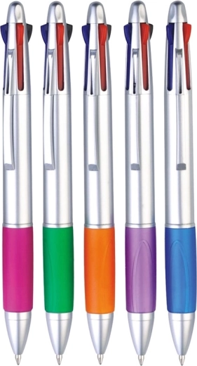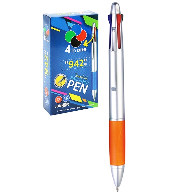 Der clevere 4-Farben-Kugelschreiber vereint Praktikabilität und Platzersparnis. Mit einem Klick wechseln Sie zwischen vier Farben und haben so alles Wichtige stets zur Hand. Dank der mittleren Strichstärke von 1 mm ist die Schrift gut lesbar und flüssig.