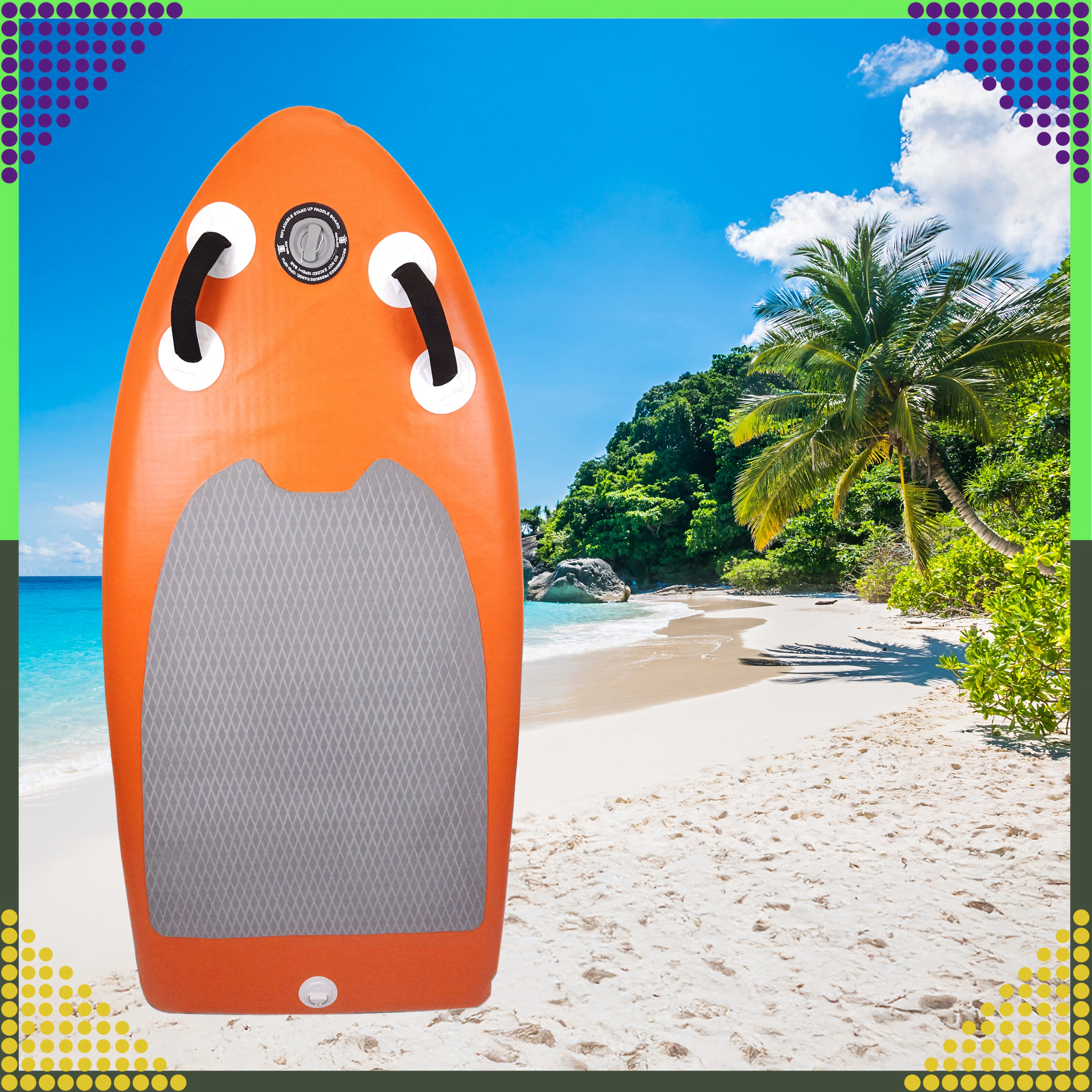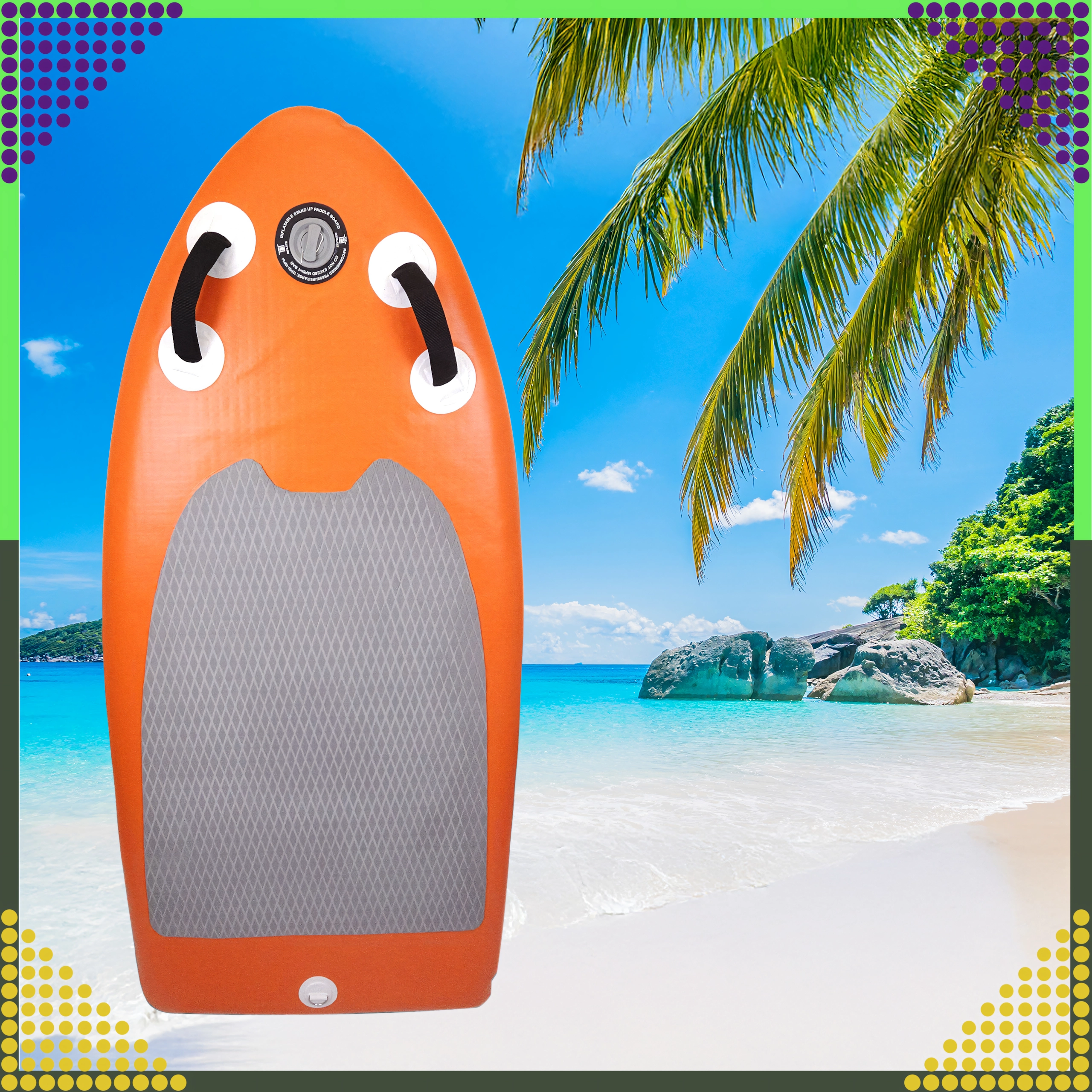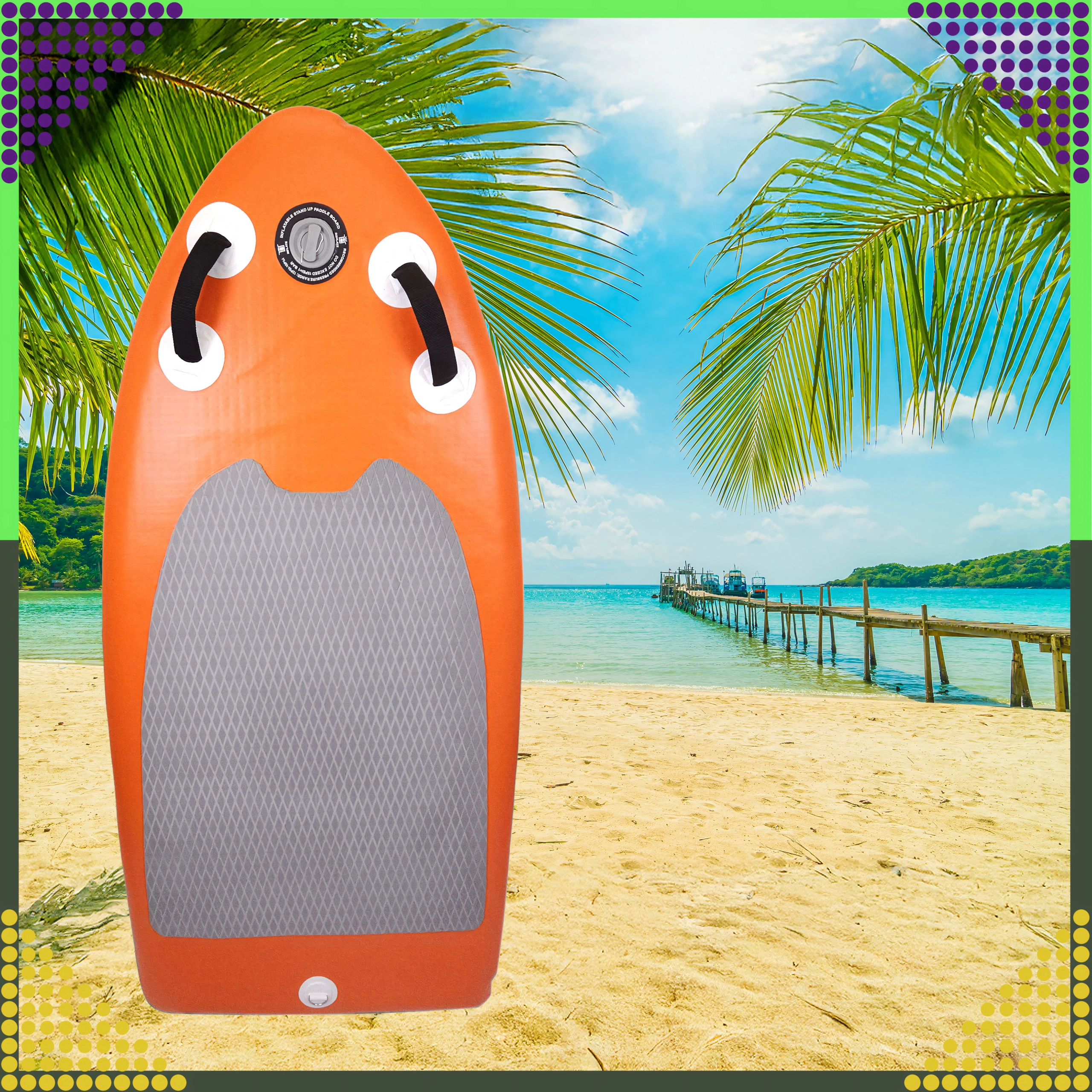 Die Konstruktion mit Verbundaußenhaut und verstärkter PVC-Schicht bietet hohe Widerstandsfähigkeit, während die EVA-Schaumoberfläche mit Diamantstruktur den Fuß auch bei längeren Fahrten fest hält. Das Hochdruckventil sorgt für ein schnelles und sicheres Aufpumpen, die thermische Verklebung der Schichten für ausgezeichnete Dichtheit und eine lange Lebensdauer.