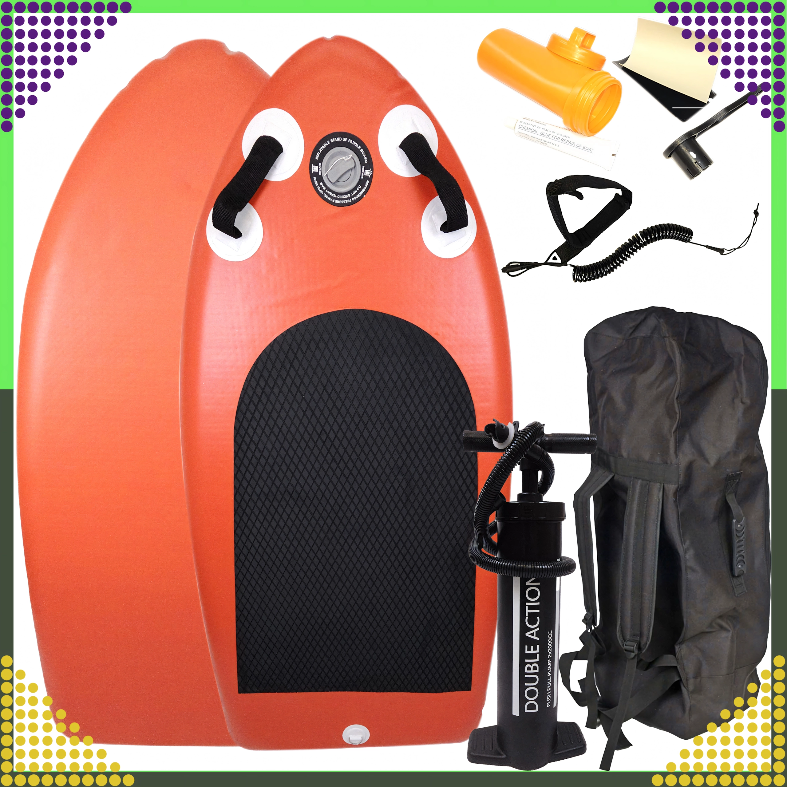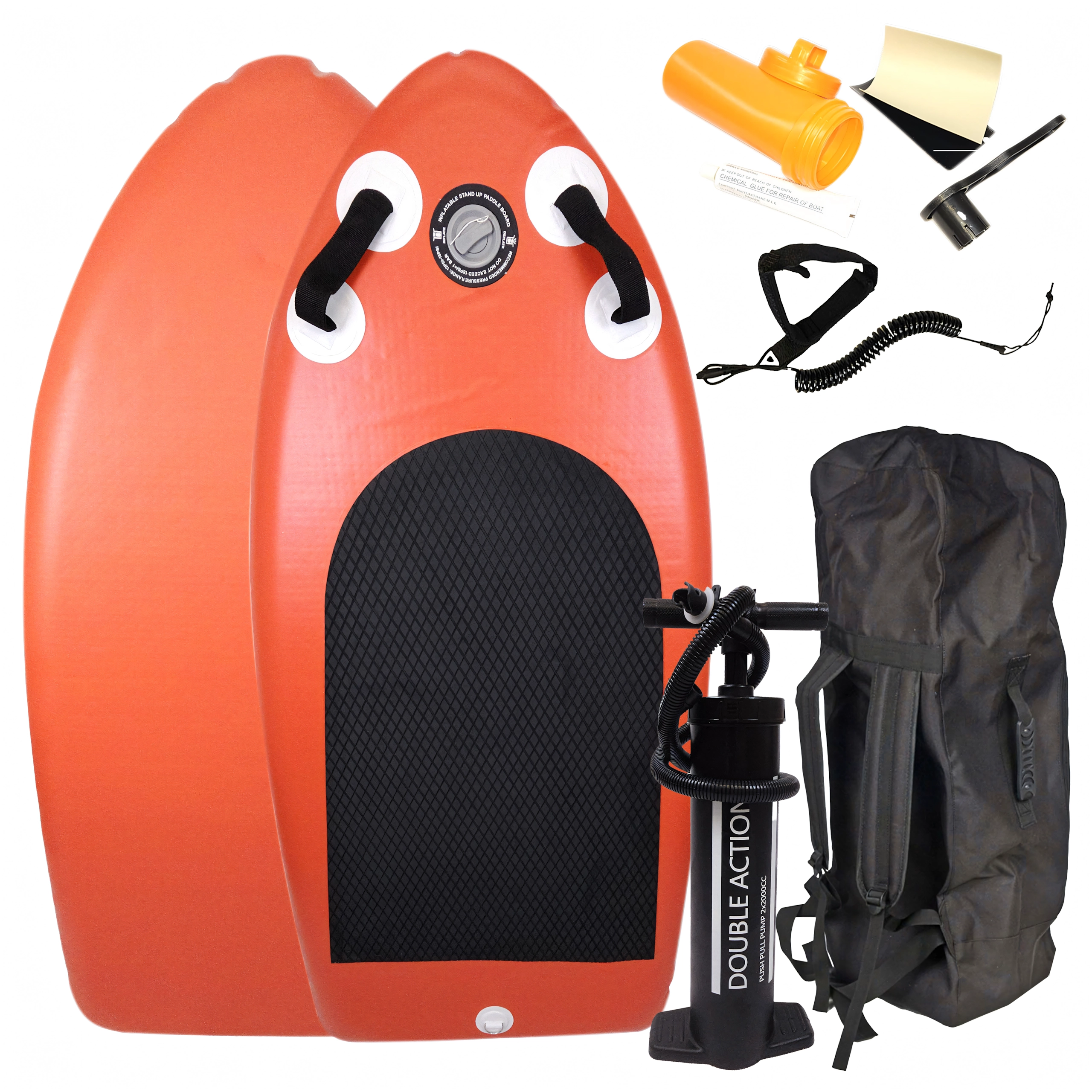 Die mehrlagige Verbundstruktur mit verstärktem PVC und thermisch laminierten Nähten erhöht die Steifigkeit und Dichtigkeit. Im Lieferumfang ist alles enthalten, was Sie benötigen: eine Doppelhubpumpe für schnelles Aufpumpen, eine Leash für die sichere Befestigung am Handgelenk sowie ein Reparaturset für kleine Eingriffe unterwegs.