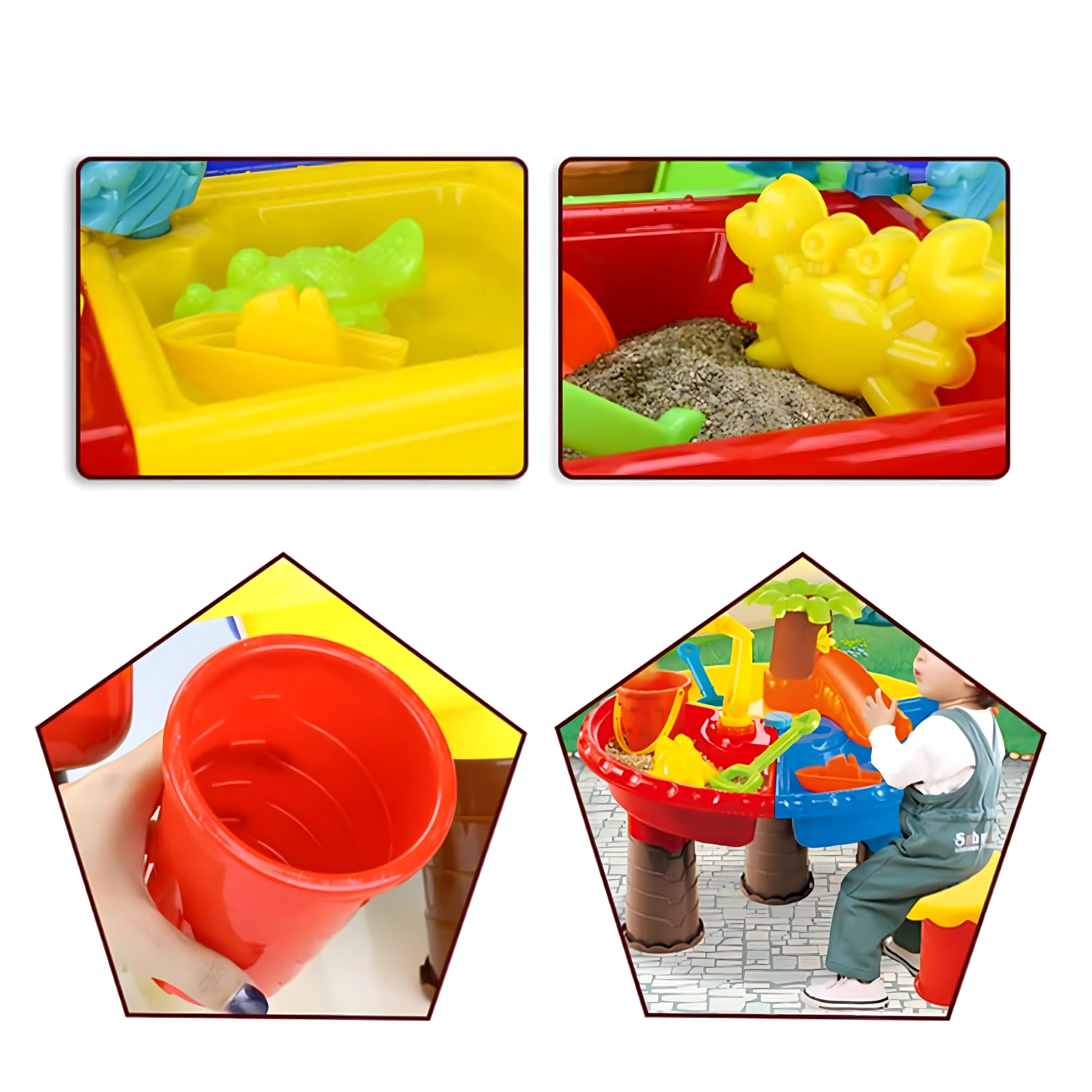 • 2-in-1 Wasser- und Sandspiel – ideal für sensorische Entwicklung und kreatives Gestalten.