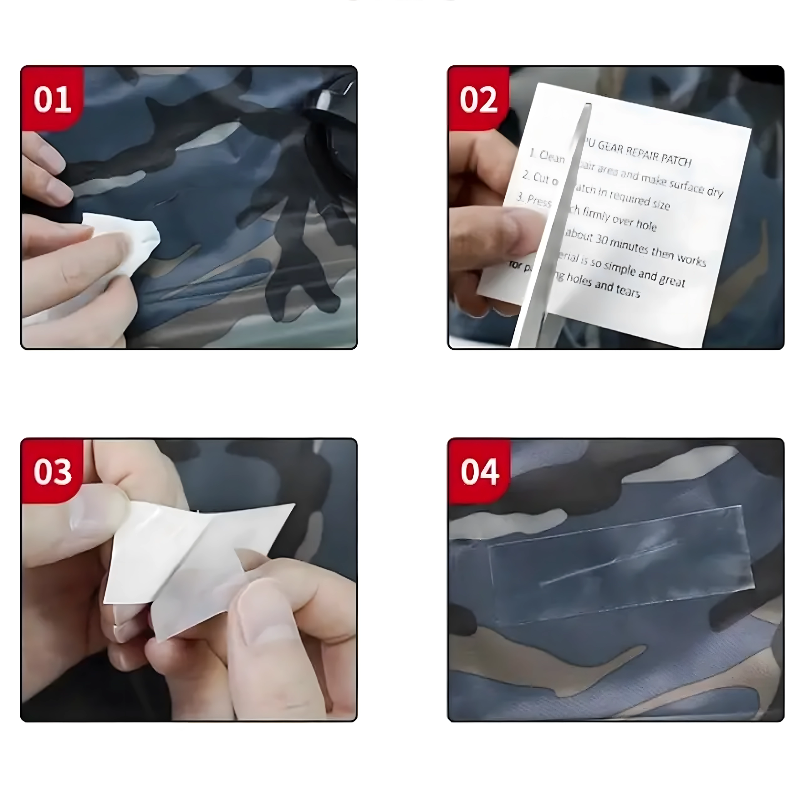 Transparente Flicken verschmelzen mit der Oberfläche und sorgen für eine strapazierfähige Verstärkung ohne störende Optik. Ideal für Gewebe und PVC.