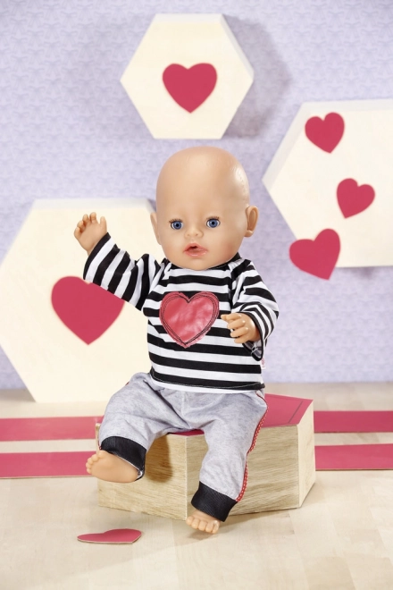 Dolly Moda gestreifter Trainingsanzug für Puppen 43 cm. Universeller Schnitt für 39–46 cm, stylisches Sweatshirt und Hose. Kompatibel mit BABY born und Baby Annabell.