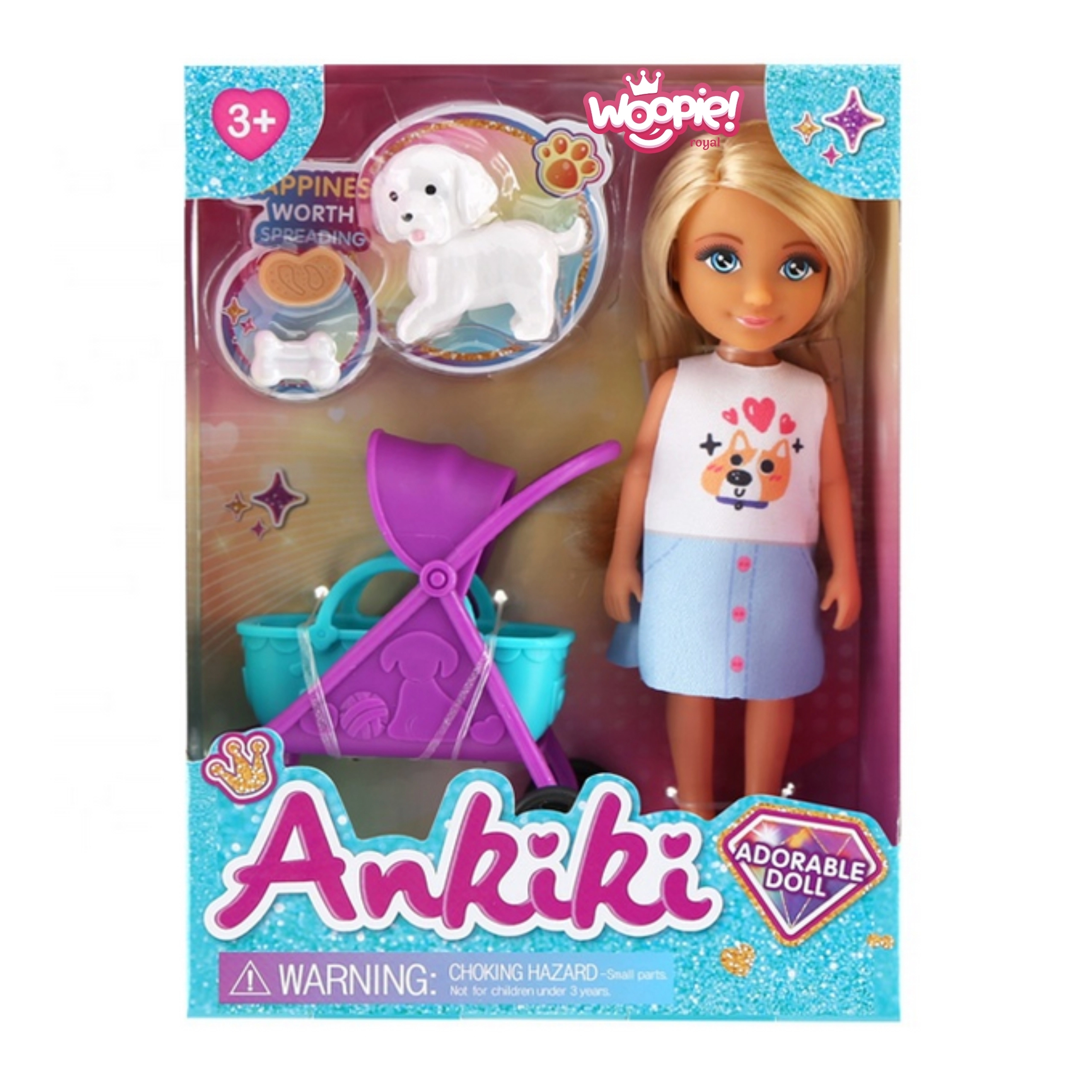 Entdecken Sie die Welt liebevoller Fürsorge und Fantasie mit Puppe Niki und ihrem Hündchen. Das Set von WOOPIE ROYAL bietet alles, was Kinder für ein realistisches Spiel brauchen – vom stylischen Sommeroutfit der Puppe bis zum Kinderwagen/Trage für das Haustier. Dank der beiliegenden Leckerlis kann Ihr Kind Fürsorge und Verantwortungsgefühl spielerisch trainieren.