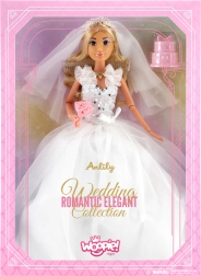 Tauchen Sie ein in die Welt der Eleganz und Romantik mit der Brautpuppe Lily. Die schöne Braut in einem weißen Tüllrock mit verziertem Korsett und zartem Schleier überzeugt durch die präzise Verarbeitung der Details. In der Hand hält sie einen niedlichen Rosenstrauß und ihr langes, helles Haar lädt zum Kämmen und Stylen ein.