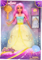 Die Puppe Woopie Lili – Prinzessin aus dem Ozean entführt Kinder in eine Welt märchenhafter Geschichten, inspiriert vom Unterwasserkönigreich. Ihre langen rosa Haare sind wie geschaffen zum Kämmen und Stylen, während das glitzernde Pastellkleid mit maritimer Note ihren königlichen Look unterstreicht.