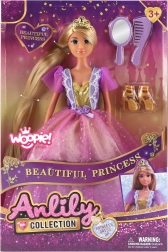Tauche ein in eine märchenhafte Welt mit der Puppe Prinzessin Lili. Ihr rosa‑lila Kleid mit glitzernden Details und die goldene Krone sorgen für einen magischen Look, der Kinder zu fantasievollen Geschichten inspiriert. Die langen blonden Haare lassen sich dank der beiliegenden Accessoires leicht kämmen und frisieren.