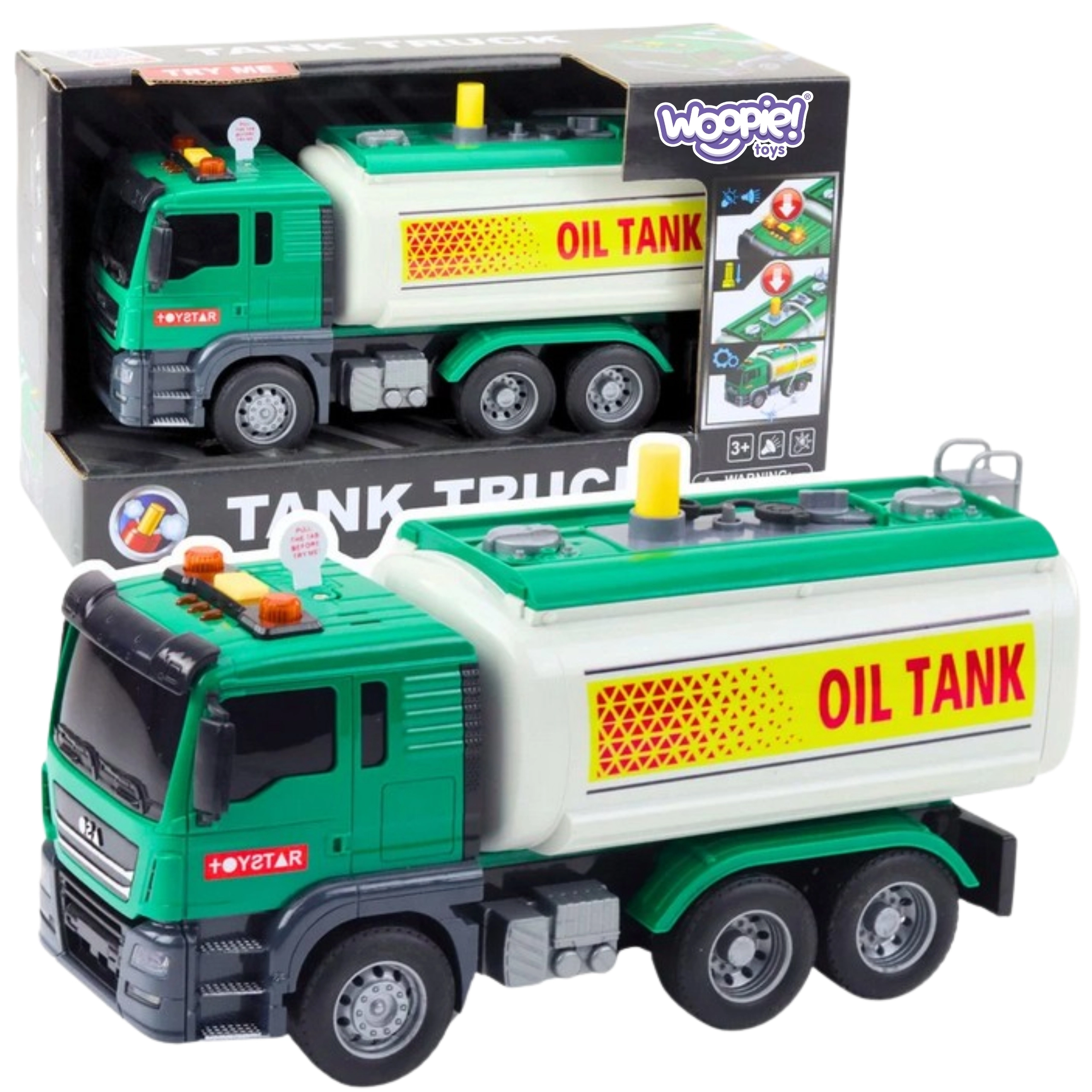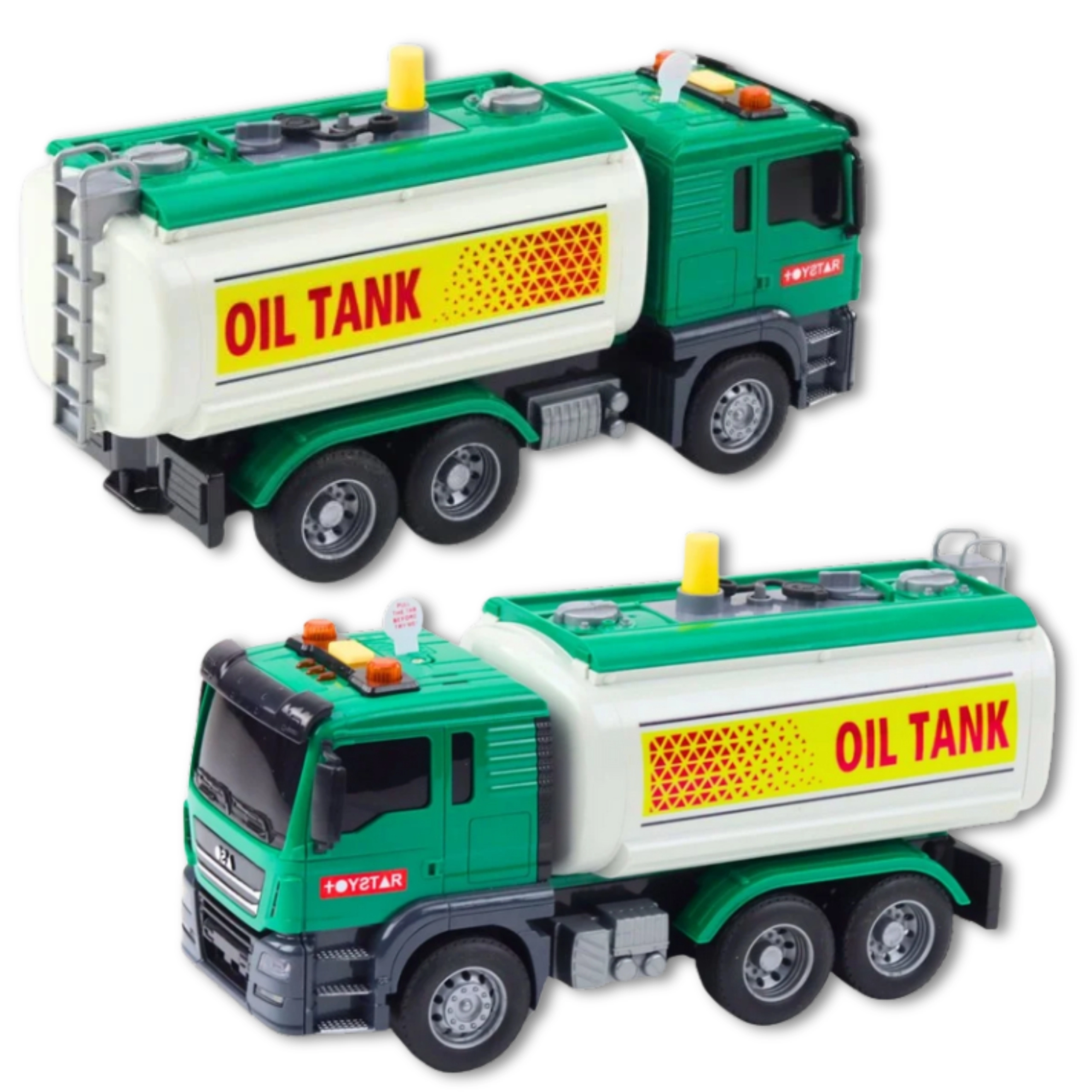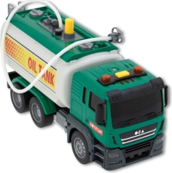 Dieser grüne technische Wassertankwagen im Maßstab 1:14 bringt Kindern realistischen Spielspaß. Einfach den Tank füllen, die gelbe Pumpentaste drücken und aus dem Schlauch fließt Wasser – ideal für das Nachspielen von Betankungen und actionreichen Spielszenarien. Auf dem Dach der Kabine befinden sich Tasten mit Effekten – Hupe, Rückwärtsfahren und Motorgeräusche, ergänzt durch blinkende Lichter.