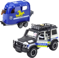Entdecken Sie die actionreiche Welt der Polizeiarbeit mit einem realistischen Set, das einen robusten Geländewagen und einen Anhänger für den Pferdetransport kombiniert. Dank Licht- und Soundeffekten wirkt das Spiel authentisch und Kinder können leicht eigene Geschichten erfinden. Öffnende Türen und ein abnehmbarer Anhänger fördern Fantasie und Feinmotorik.