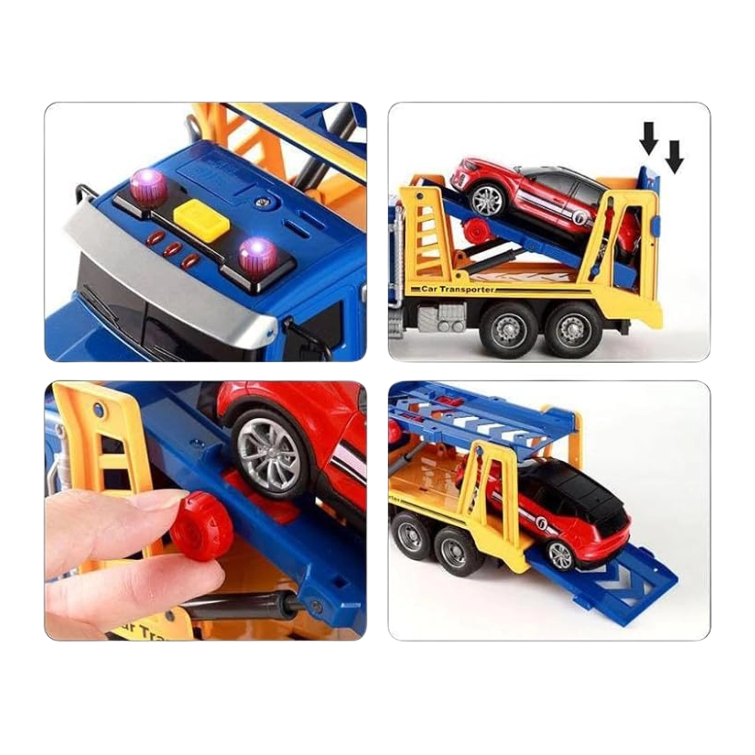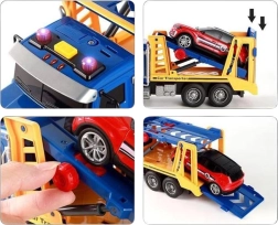 Der WOOPIE Abschlepp-LKW in Blau mit gelb-blauer Ladefläche begeistert jedes Kind, das große Fahrzeuge liebt. Tasten an der Kabine aktivieren die Licht- und Soundeffekte für ein noch authentischeres Spielerlebnis. Die bewegliche Ladefläche ermöglicht das einfache Absenken und Aufladen des beiliegenden Autos, sodass Kinder ihre eigenen Verkehrsgeschichten erschaffen können.