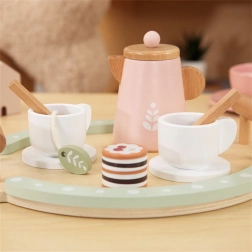 Alles, was kleine Gastgeberinnen und Gastgeber brauchen: Kännchen, Tassen, Löffel, Zuckerdose, Desserts sowie ein Tablett mit Griffen für einfaches Servieren.