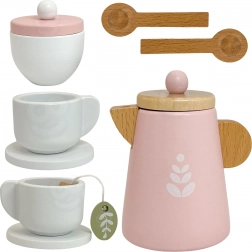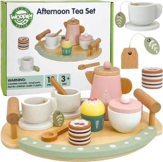 Das WOOPIE GREEN Tee- und Kaffeeset aus Holz verwandelt jeden Tag in ein zauberhaftes Teezeremoniell. Zeitloses Design in sanften Farben, glatte Oberflächen und angenehme Formen sind ideal für kleine Hände. Kinder können Tee aus dem Kännchen servieren, Küchlein und Kekse anbieten und beim gemeinsamen Spiel soziale Fähigkeiten entwickeln.