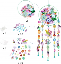 Mit dem DIY-Set der Marke DJECO gestalten Sie einen zauberhaften Sonnenvorhang mit kleinen Vögelchen, der bei jedem Lichteinfall begeistert. Die von Feng Shui inspirierte Dekoration bringt Leichtigkeit, Farben und ein angenehmes Spiel aus Licht in den Raum.