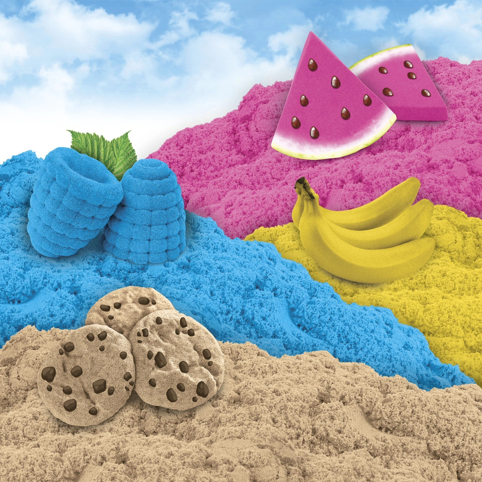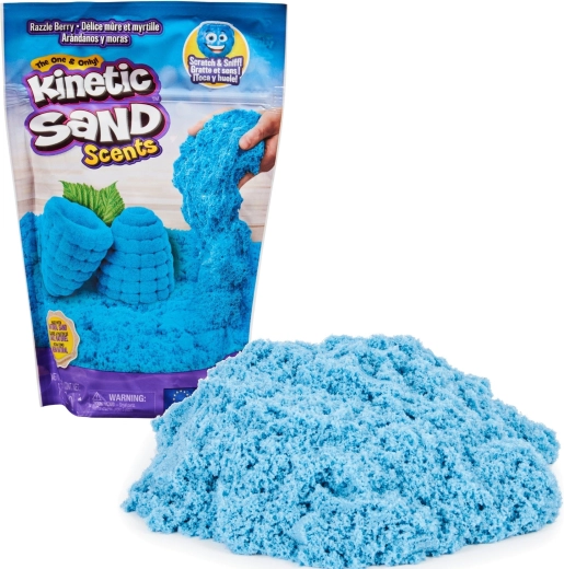 Der blaue Kinetic Sand mit Heidelbeerduft verbindet Formbarkeit mit einem angenehmen Aroma für noch mehr Spielspaß und Relaxation.