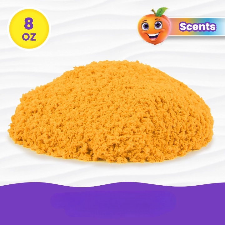 KINETIC SAND Scents bietet ein sinnliches Spielerlebnis mit dem realistischen Gefühl von nassem Sand, der dennoch nicht an den Händen klebt. Der angenehme Pfirsichduft regt die Fantasie an, während die weiche und formbare Textur den Ausbau der Feinmotorik und die Konzentration fördert.