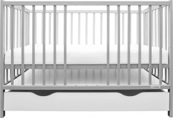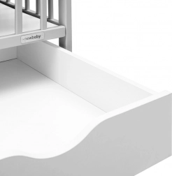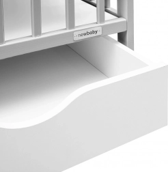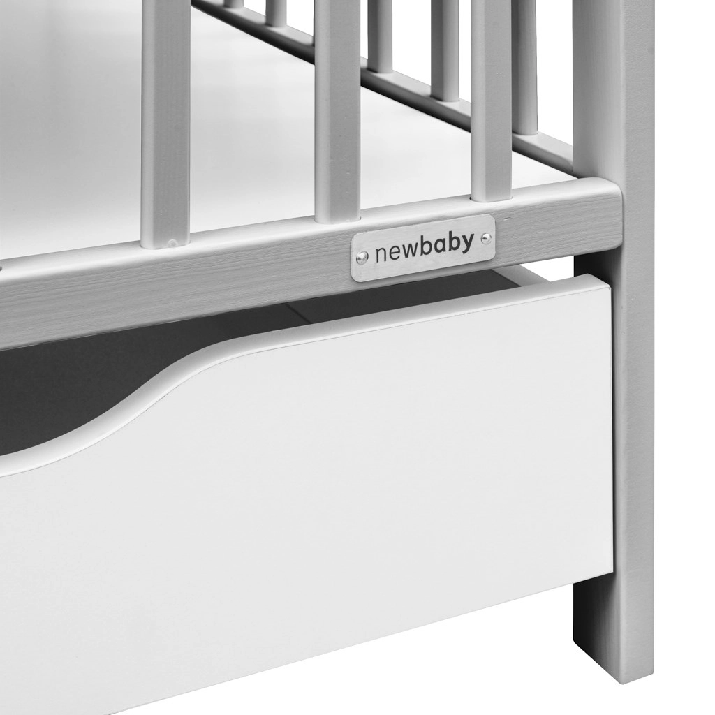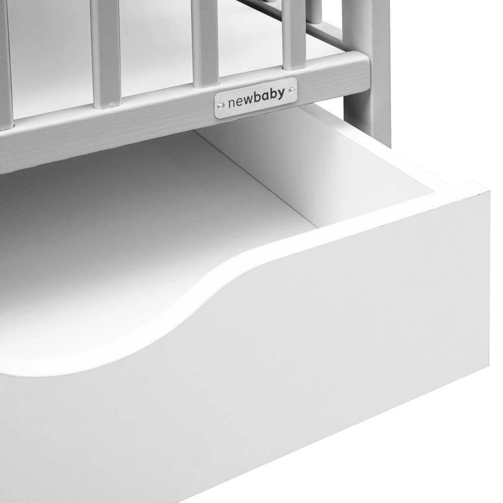 Die praktische MDF-Schublade auf Kugelauszügen berührt den Boden nicht, lässt sich daher leicht herausziehen und bleibt sauber. Der verstellbare Lattenrost in drei Höhen (22/38/51 cm über dem Boden) passt sich Neugeborenen wie Kleinkindern an, und drei herausnehmbare Sprossen ermöglichen einen sicheren selbstständigen Zugang, ohne die gesamte Seitenwand absenken zu müssen.