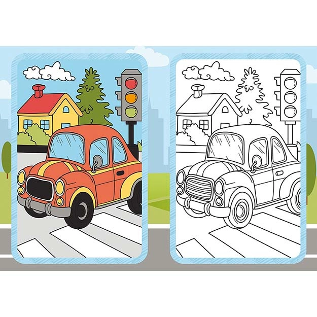 Fördern Sie die Kreativität und Feinmotorik der Kinder mit einem Malbuch zum Thema Verkehr. Jede Seite bietet einfache, übersichtliche Motive von Autos, Zügen, Schiffen oder Flugzeugen sowie farbige Vorlagen, die bei der Auswahl der Farbtöne helfen.