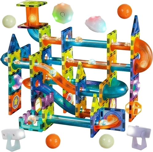 Magnetische 3D-Bausteine mit Murmelbahn, 110 Teile