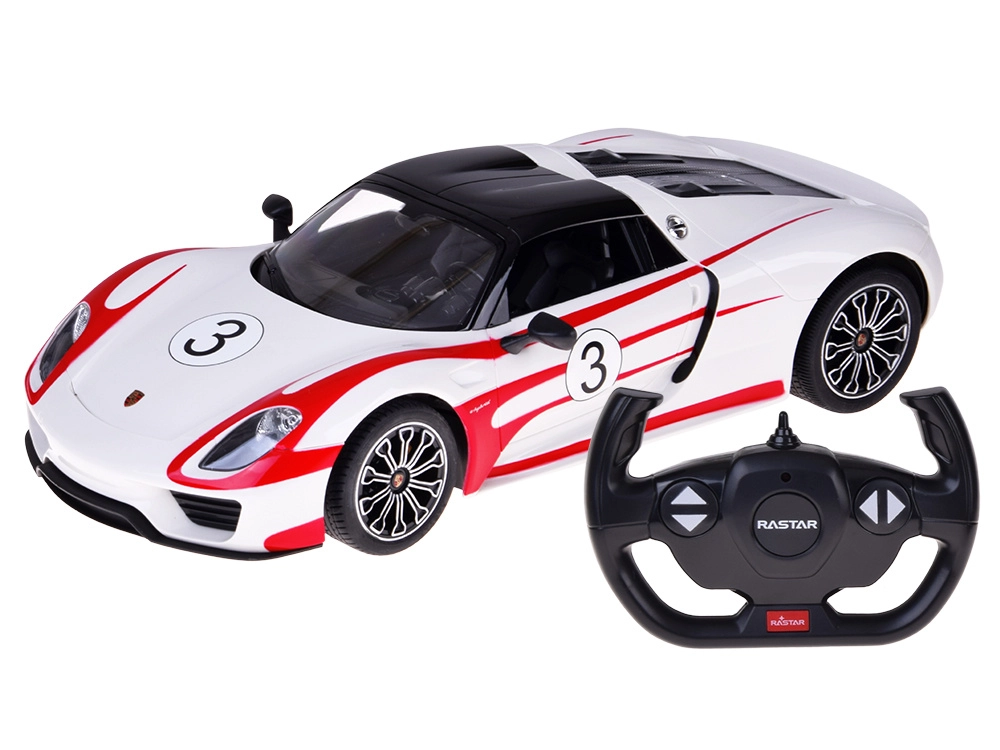 Rastar RC Auto PORSCHE 918 Spyder Weissach 1:14 mit Beleuchtung – weiß