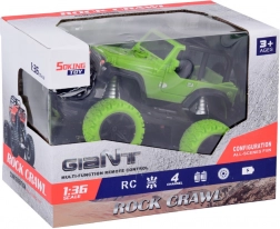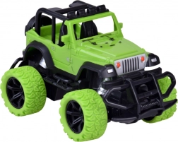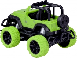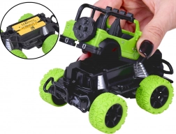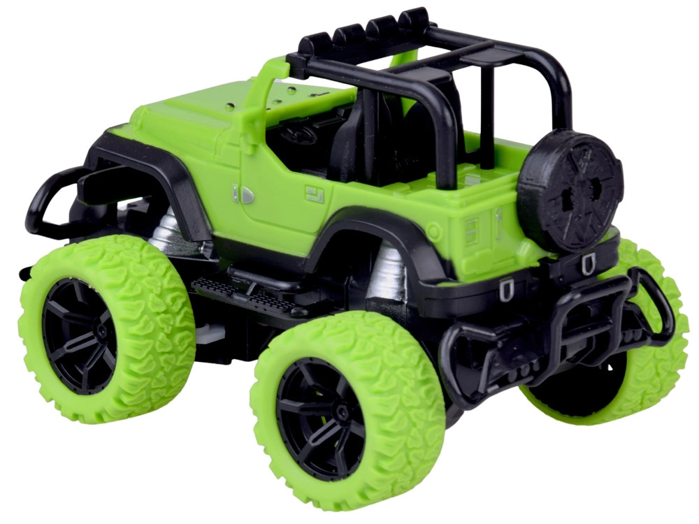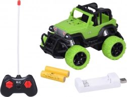 Genießen Sie actionreiche Fahrten zu Hause und draußen mit dem robusten RC-Geländewagen in leuchtendem Grün mit schwarzen Details. Große Geländereifen aus Gummi sorgen für sicheren Grip auf verschiedenen Oberflächen, während die Feineinstellung der Spur/Lenkung der Vorderräder hilft, Geradeauslauf und präzise Manöver abzustimmen. Zwei rote LEDs am Unterboden verleihen der Fahrt einen eindrucksvollen Look.