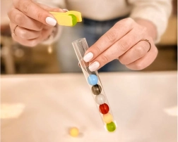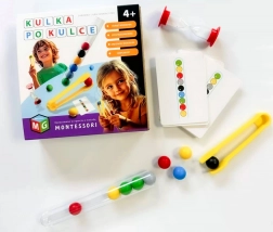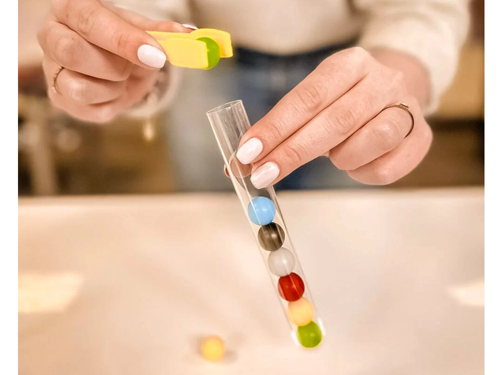 Dieses originelle Lernspiel, inspiriert von der MONTESSORI-Methode, unterstützt Lernen durch Handeln. Kinder greifen bunte Kügelchen mit der Pinzette und legen sie in ein Reagenzglas – entweder frei oder nach Vorlagenkarten. So trainieren sie Bewegungsgenauigkeit, Geduld und die Auge-Hand-Koordination.