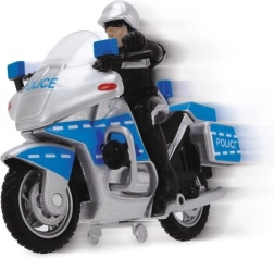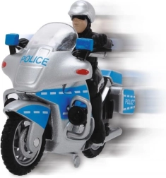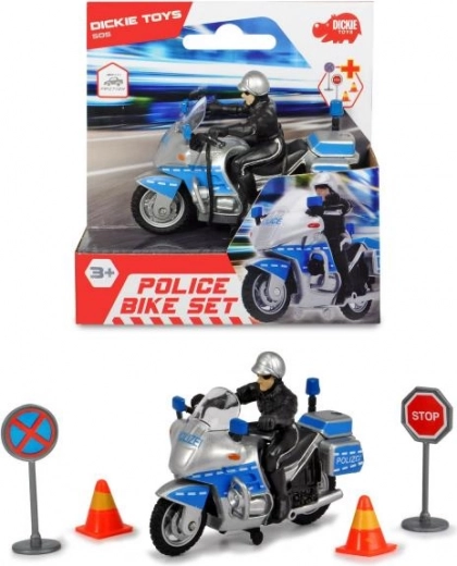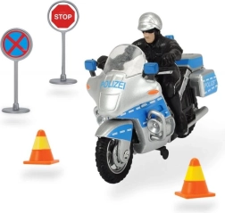 - Set enthält: Polizei-Motorrad auf Rückzugmechanismus, einen Fahrer, zwei Verkehrsschilder und zwei Verkehrskegel.