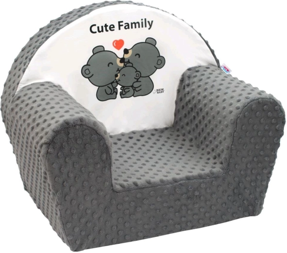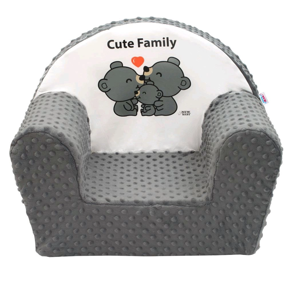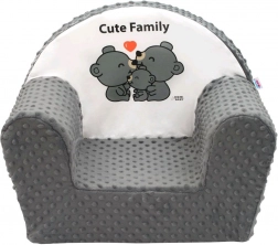 Der praktische abnehmbare Bezug ist waschbar, sodass der Stuhl stets sauber und frisch bleibt. Das dezente Grau passt in jedes Kinderzimmer und das Cute Family-Motiv werden Kinder schnell lieben.