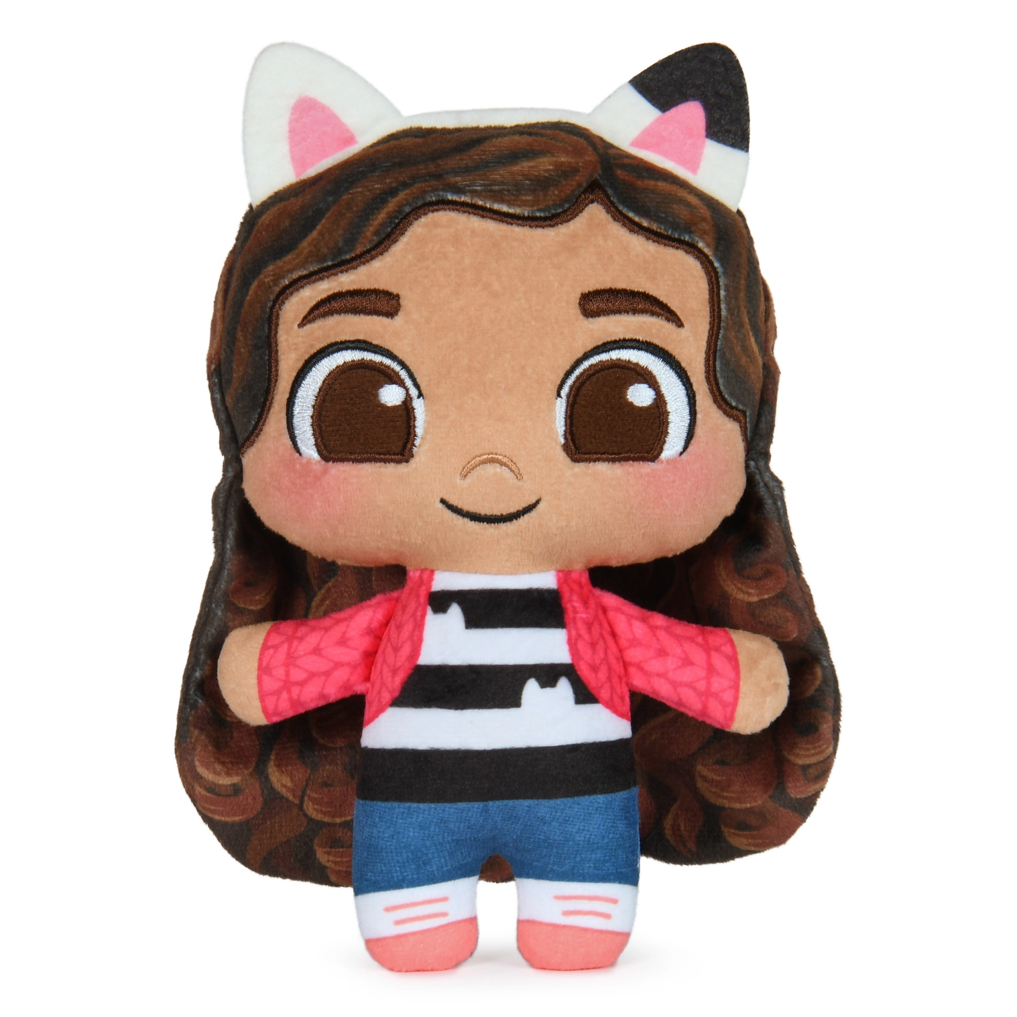 Entdecken Sie die Magie von GABBY’S DOLLHOUSE mit der Plüschpuppe Gabby von ca. 19 cm Höhe. Das authentische Design spiegelt die beliebte Heldin wider – gestreiftes Shirt, rosafarbene Jacke, blaue Hose und Katzenohren machen die Puppe zur tollen Begleiterin für fantasievolle Spiele.