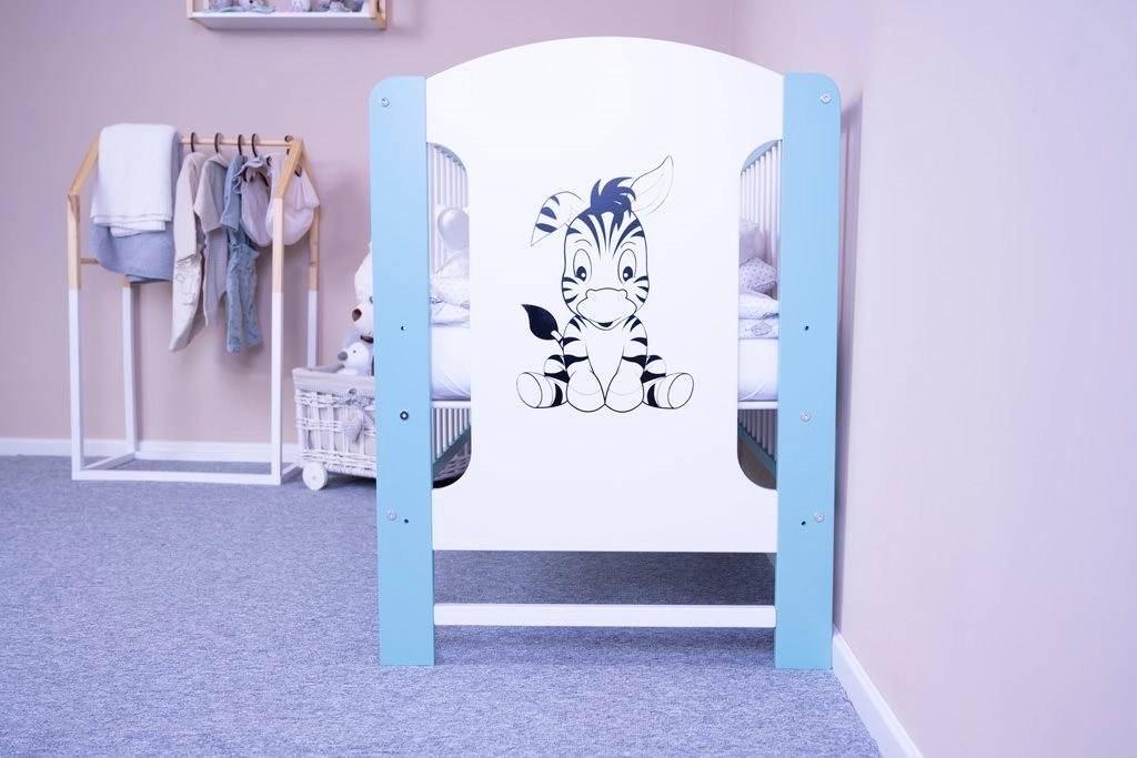 Die praktische Ausführung ermöglicht 3 Rostpositionen (22/38/51 cm) sowie drei herausnehmbare Stäbe für einen leichteren Zugang zum Kind. Der Rost mit stabilen Leisten und hochwertigen, verleimten Verbindungen sorgt für Festigkeit und Langlebigkeit. Das dekorative Zebramotiv verleiht dem Bett ein verspieltes Aussehen, das in jedes Kinderzimmer passt.