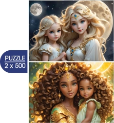 Dieses Set enthält zwei getrennte Puzzles mit je 500 Teilen, die nach dem Zusammensetzen poetische Szenen zum Thema Mond und Sonne ergeben. Dank präzise gestanzter Teile ist das Puzzeln fließend und unterhaltsam – perfekt für ruhige Abende oder gemeinsame Momente mit der Familie.