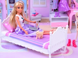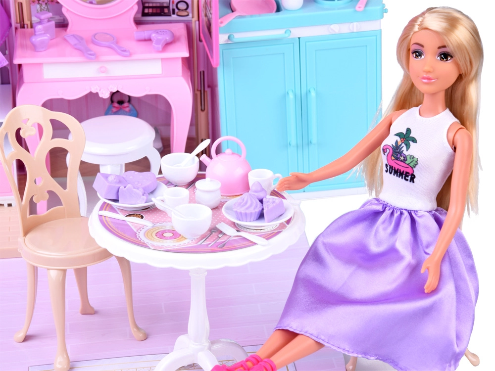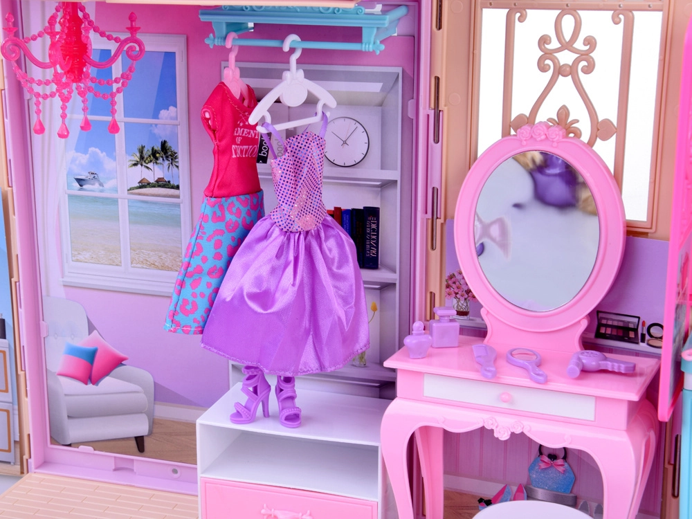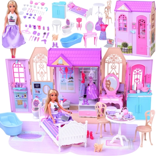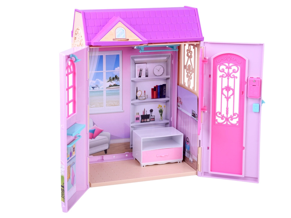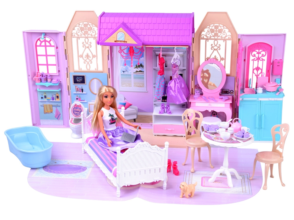 Badezimmer, Schlafzimmer mit Schminktisch und Küche bilden ein komplettes Zuhause für die Puppe. Öffnende Türen, Fenster und detaillierte Dekorationen fördern die Vorstellungskraft und realistisches Spielen.