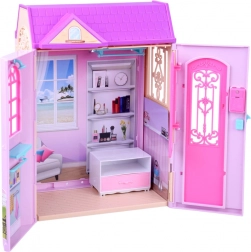 Das faltbare rosa‑lila Häuschen ist als praktischer Koffer gestaltet, den Kinder leicht in den Kindergarten, in den Urlaub oder zu Freunden mitnehmen. Aufgeklappt entsteht ein gemütliches Mini-Zuhause mit drei voll ausgestatteten Zonen: einem Badezimmer für lange Bäder, einem Schlafzimmer mit Schminktisch für Styling und Entspannung und einer Küche – dem Herzen jedes Häuschens.
