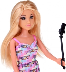 Die Puppe hat artikulierte Knie und Ellbogen und posiert dadurch leicht beim Fahren, Fotografieren und in weiteren Szenen. Das moderne FUNKY‑Kleid und die weißen Sneaker werden durch ein stylisches Accessoire – eine Smartwatch – ergänzt.
