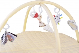Zwei weich gepolsterte Bögen mit einfachem Abknöpfen zum Waschen oder für unterwegs. An Ringen befestigte Spielzeuge motivieren zum Greifen und Festhalten.