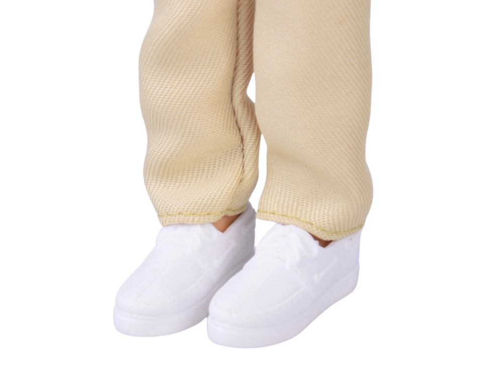 Ein elegantes Hemd mit Kragen, helle Hosen und weiße Schuhe verleihen der Puppe einen modernen Look. Die Kleidung ist abnehmbar und kombinierbar.